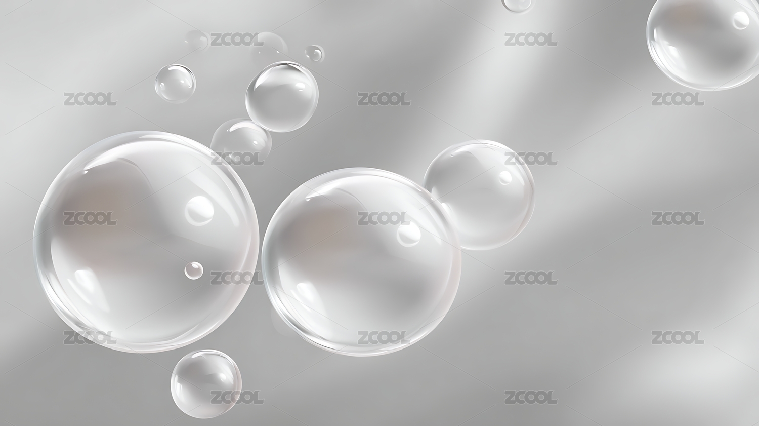 护肤精华水分子气泡浅色渐变背景,极简化学