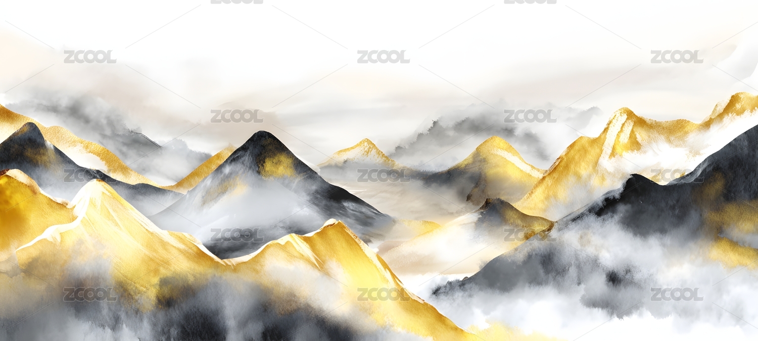 唯美,艺术,蓝色,自然,金色,绘画,山峰,云雾,水墨,意境