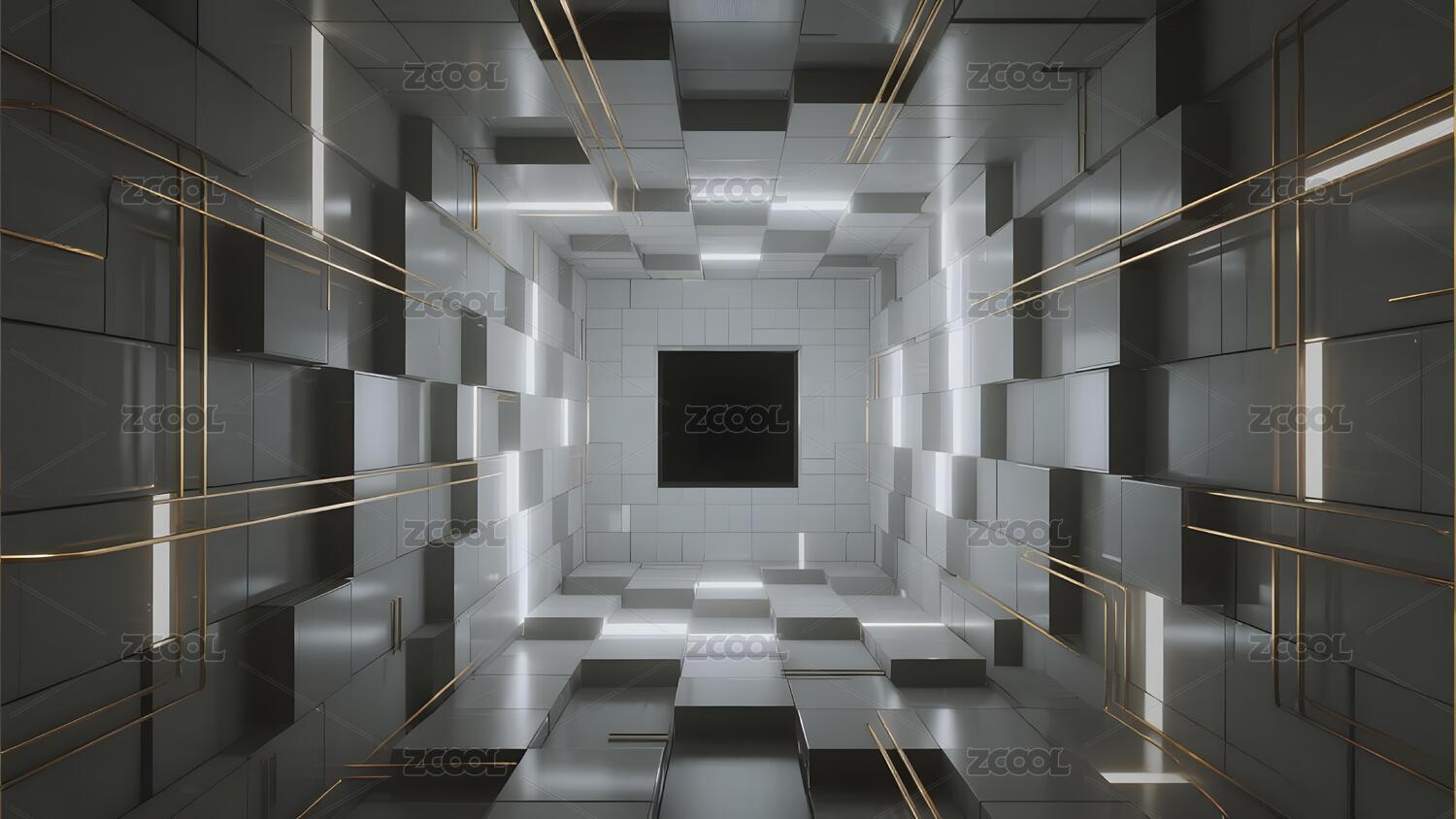 金色银色几何空间