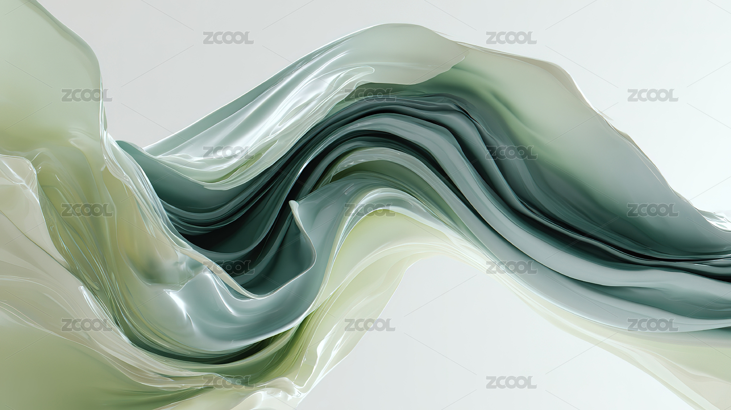 白色,绿色,丝绸,曲线,流动,飘逸,轻盈,优雅,唯美,艺术