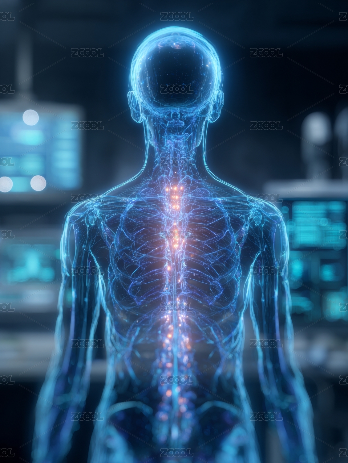 人体,骨骼,医学,影像,医疗,科技,透视,科技感,蓝色,光晕