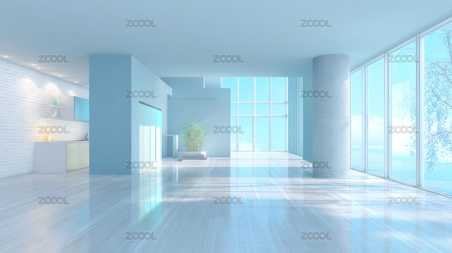 空旷房间阳光洒落