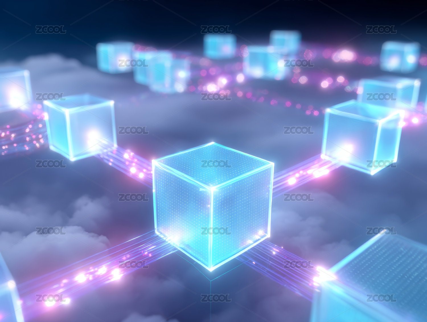 商务科技风蓝紫立方体光影主题背景