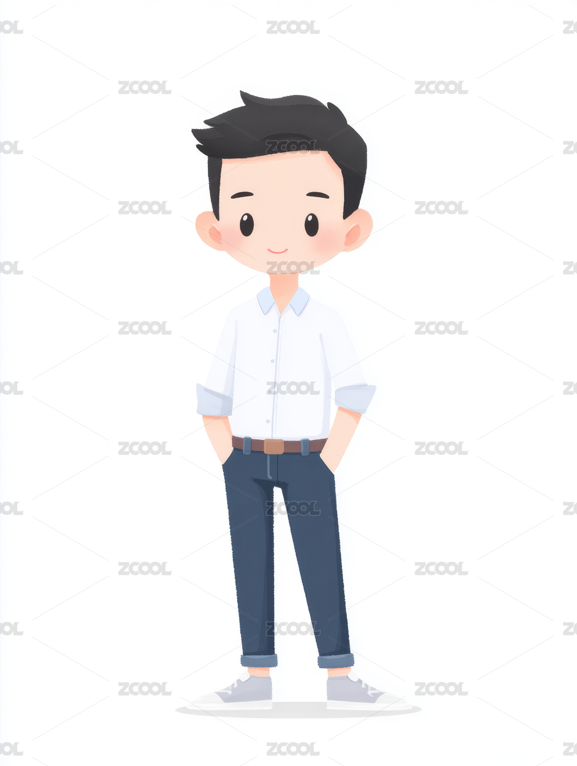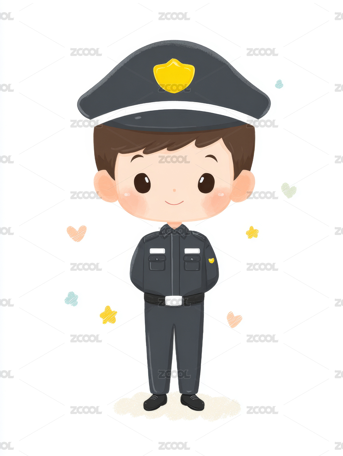 卡通,人物,制服,帽子,短袖,裤子,微笑,站立,简洁
