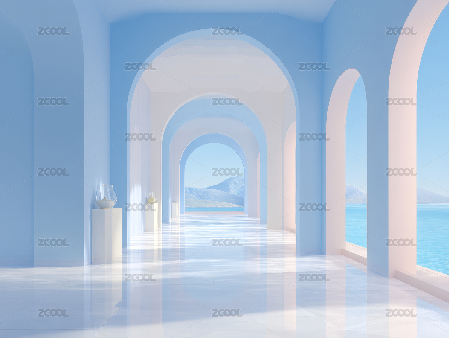 梦幻蓝色拱廊通道