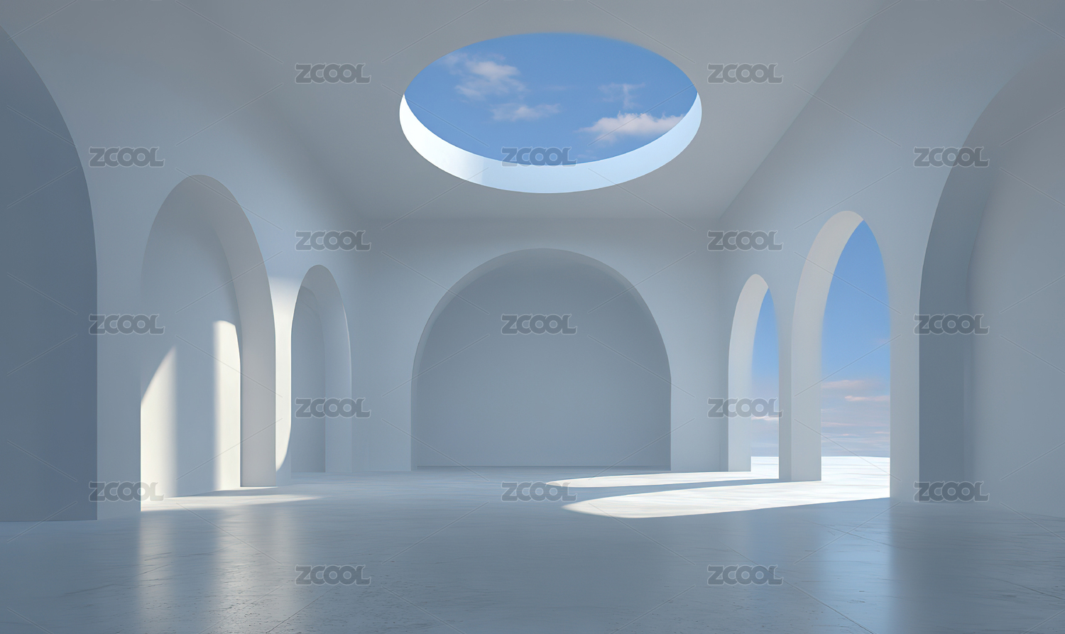 白色拱廊光影空间