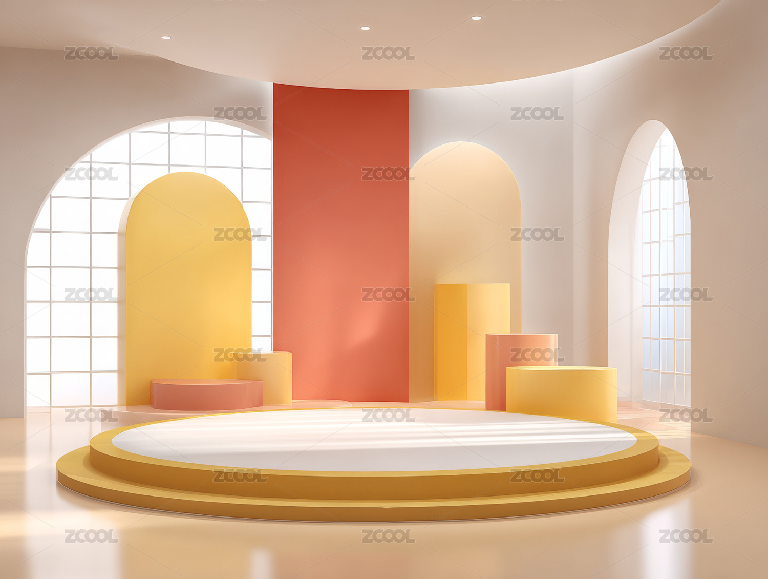 色彩,舞台,室内,灯光,拱门,圆形,现代,设计,简约,明亮