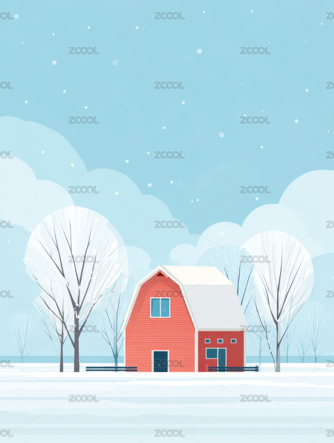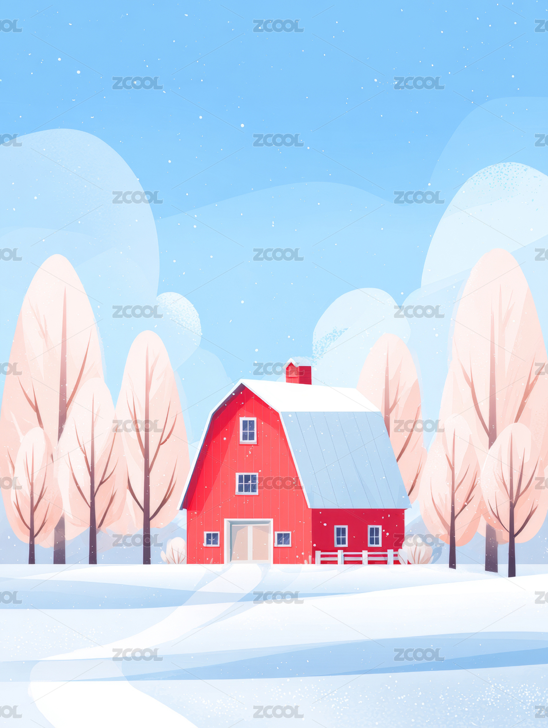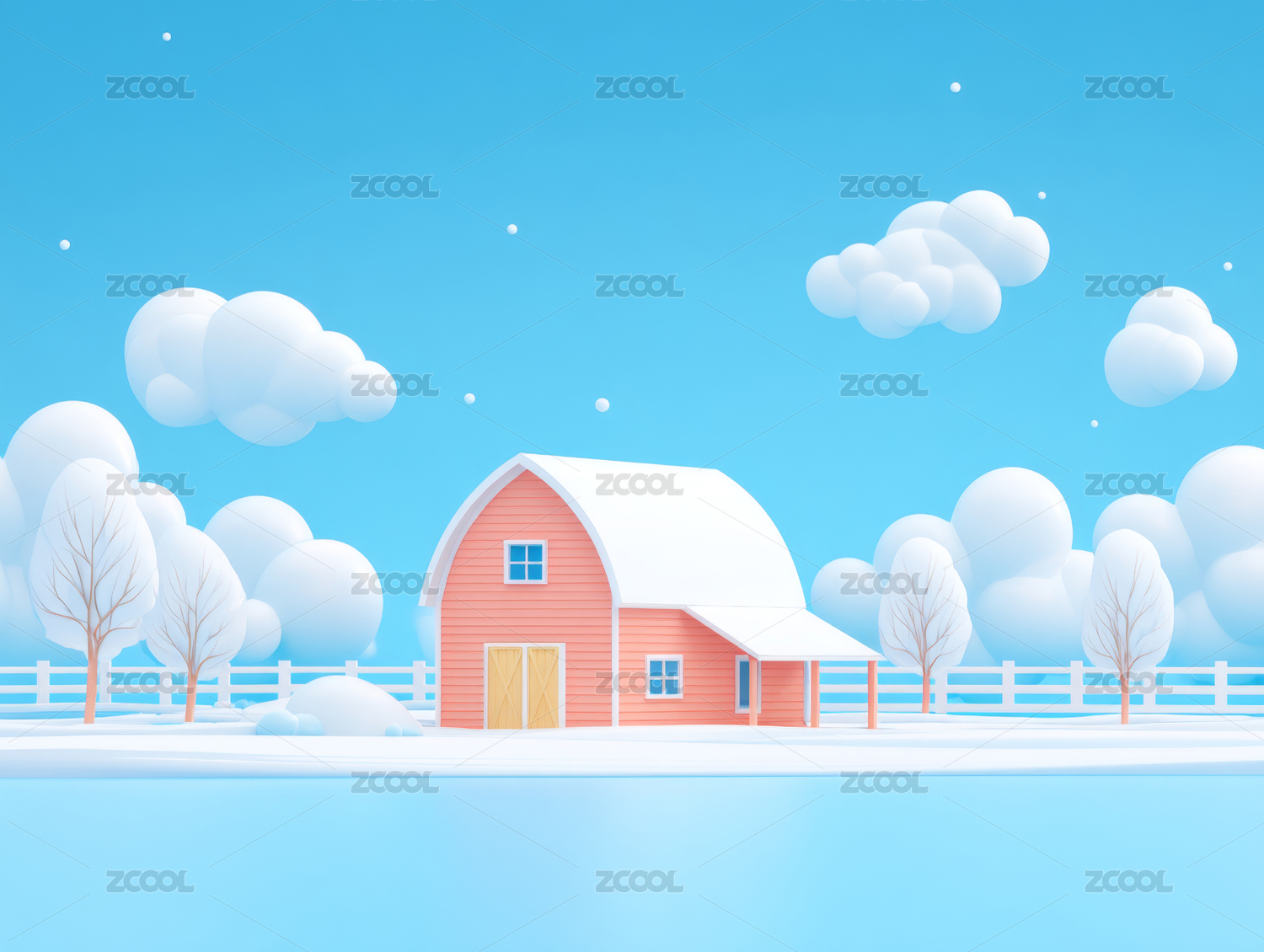 冬季,雪景,红色,小屋,树木,蓝天,雪花,乡村,宁静,自然