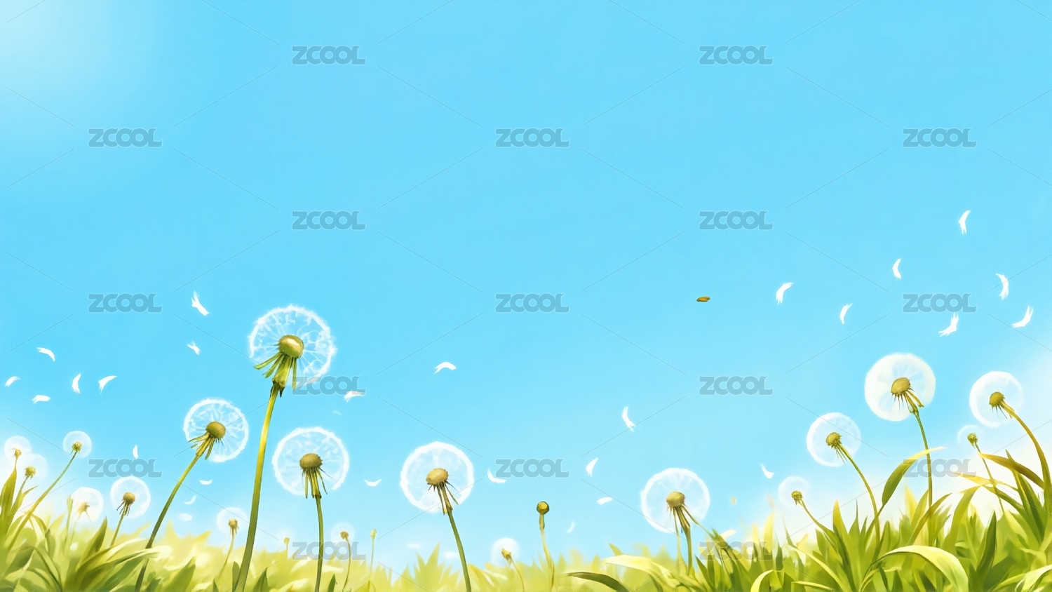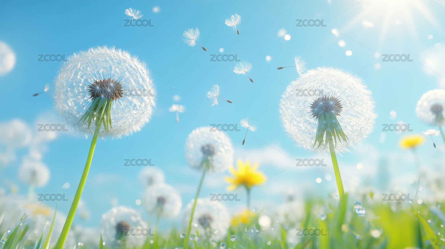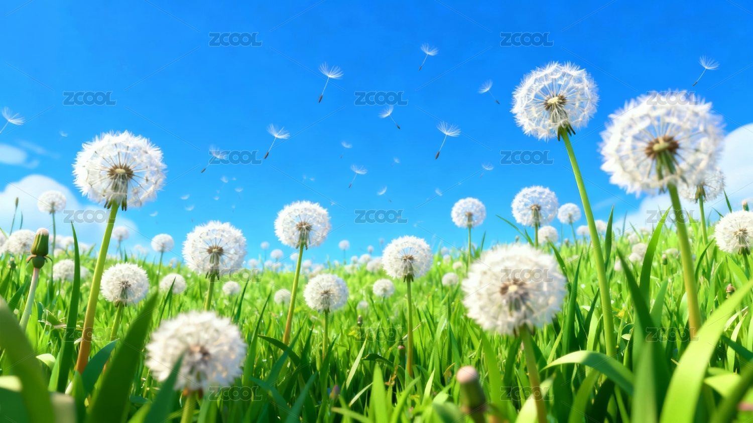 蒲公英,草地,蓝天,花朵,微风,自然,清新,春季