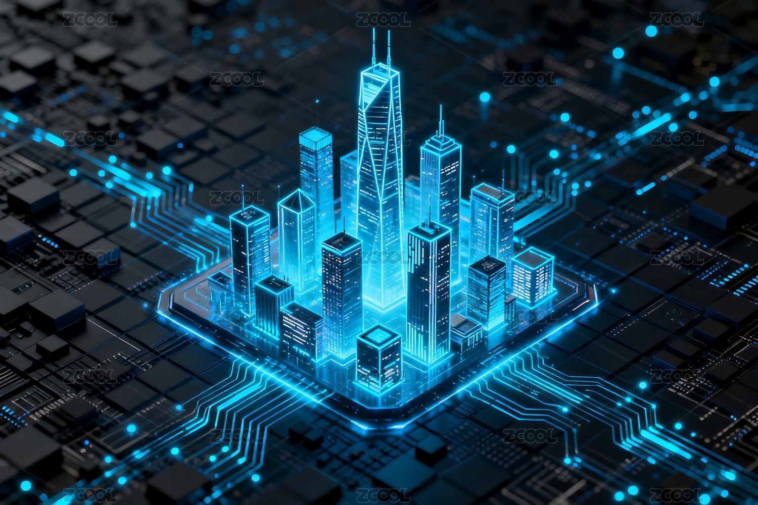 科技,城市,电路板,建筑,数据流,未来,数字化,芯片,光效,虚拟
