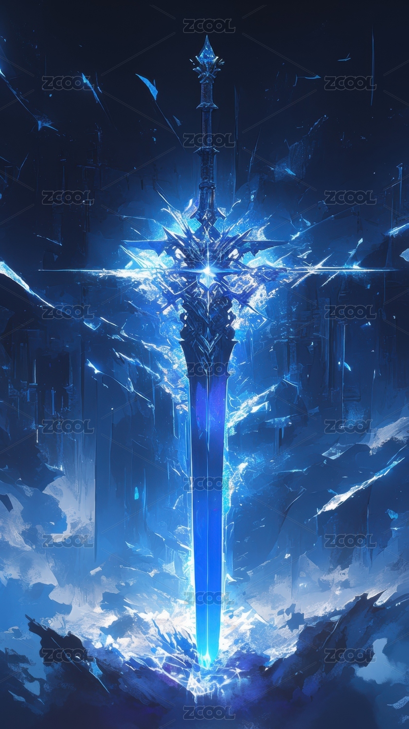金,水,玄幻,游戏,原画,素材,直立,精美,锋利,宝剑
