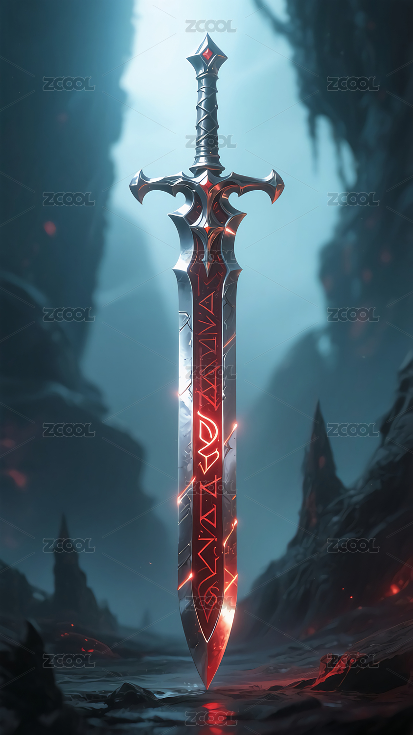 玄幻游戏原画素材锋利的宝剑3D立体插画