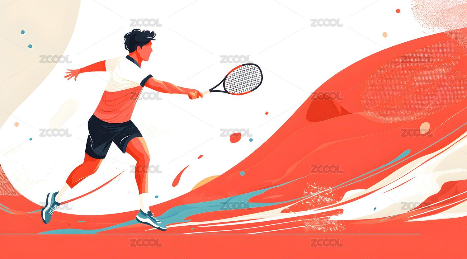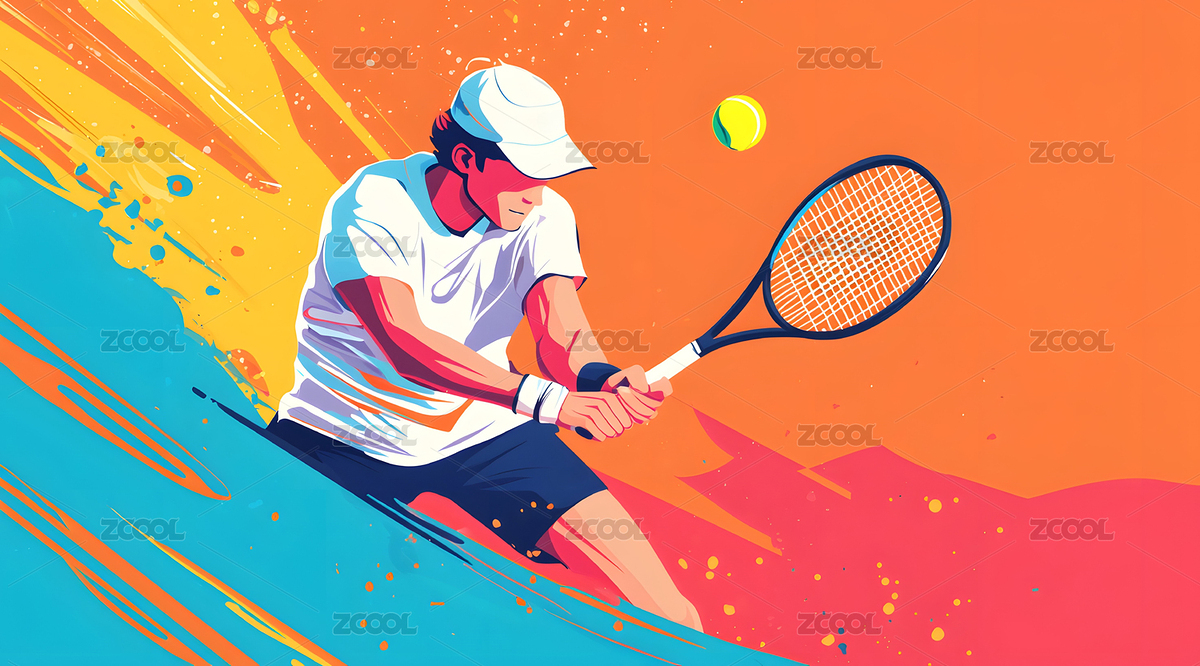 一幅充满活力的网球运动员动作插画