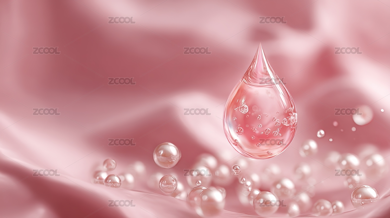 3D,粉色,美妆,水滴,珍珠,分子,精华,护肤,化妆品