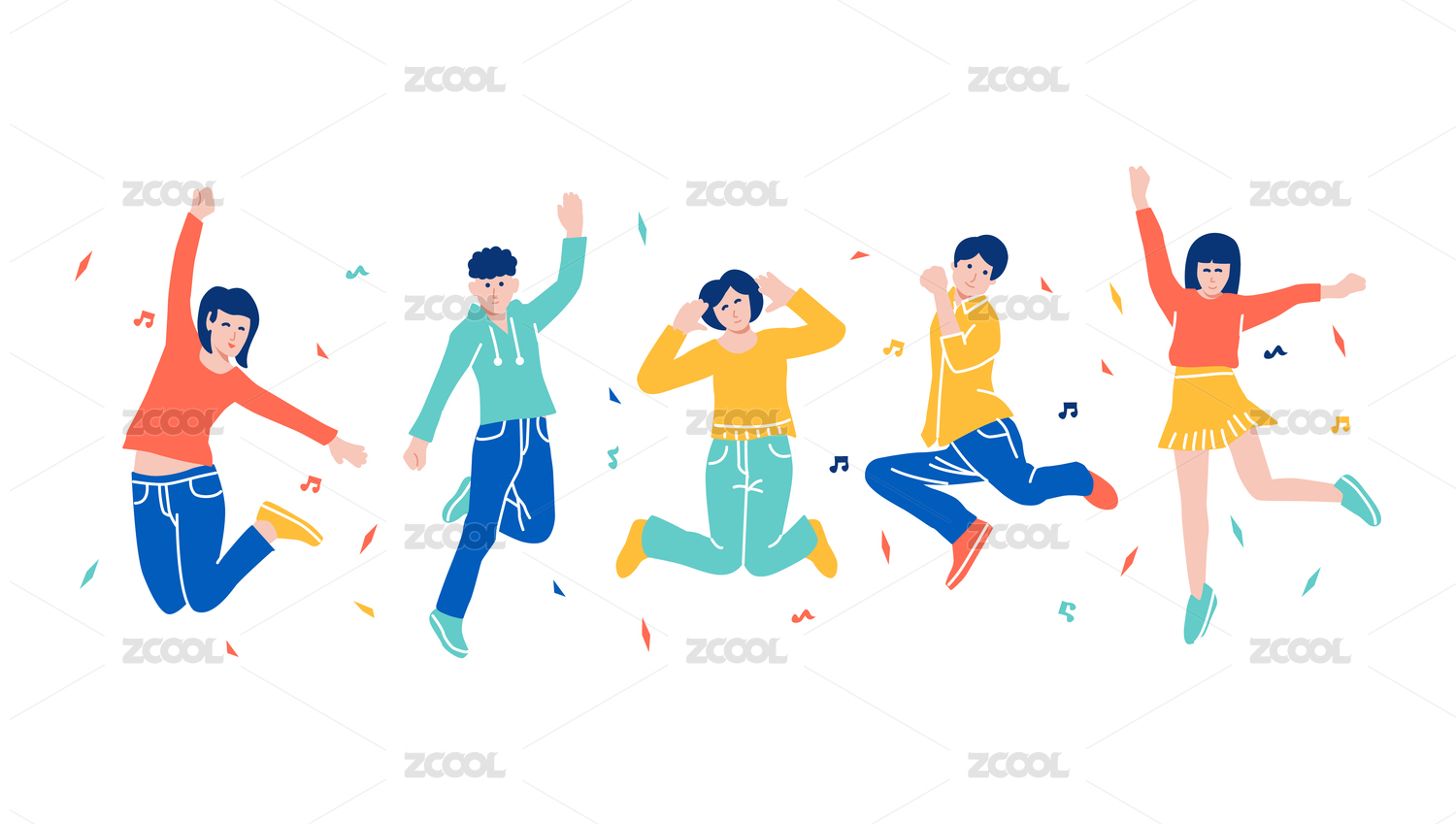 五四青年节青春活泼快乐年轻人跳跃庆祝插画