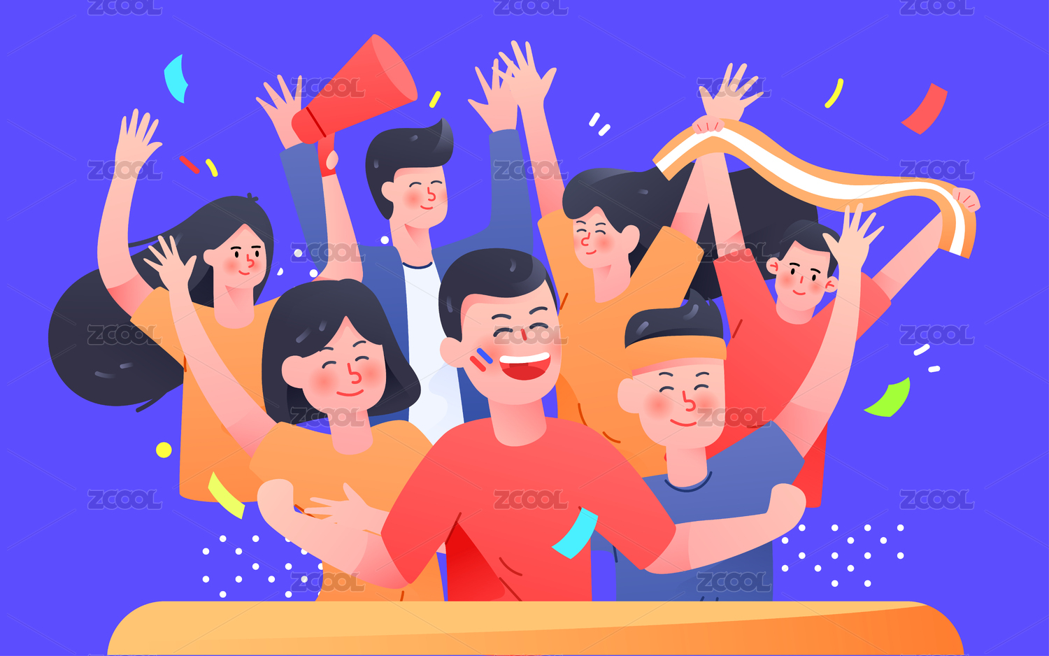 加油庆祝的人扁平矢量人物场景创意概念插画