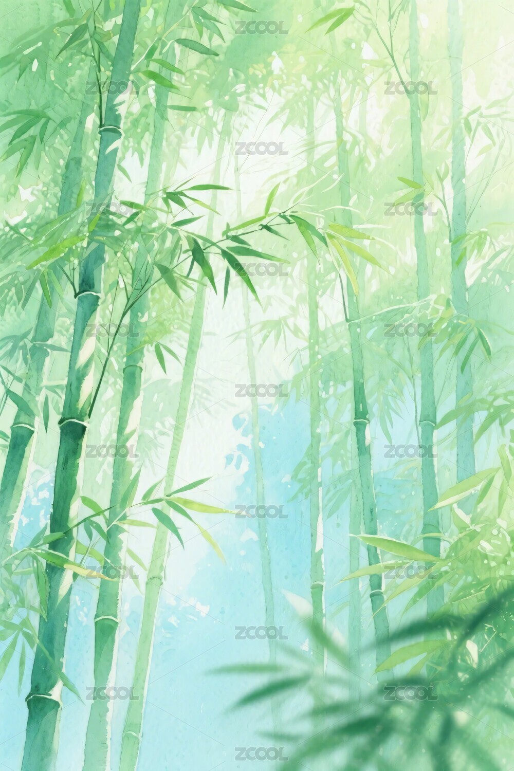 竹子,竹林,水墨,水彩,自然,风景,插画,植物,光影,背景