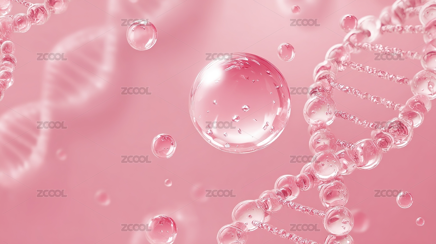 透明粉色DNA与气泡