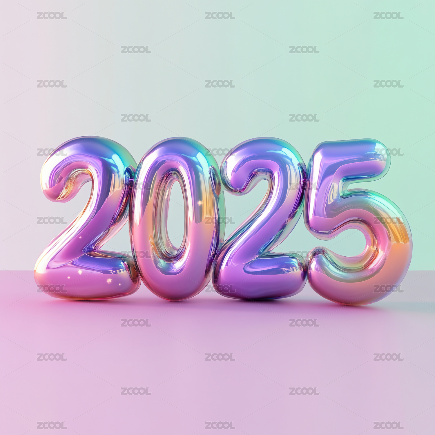 2026,数字,玻璃,质感,透明,紫色,3D,渐变