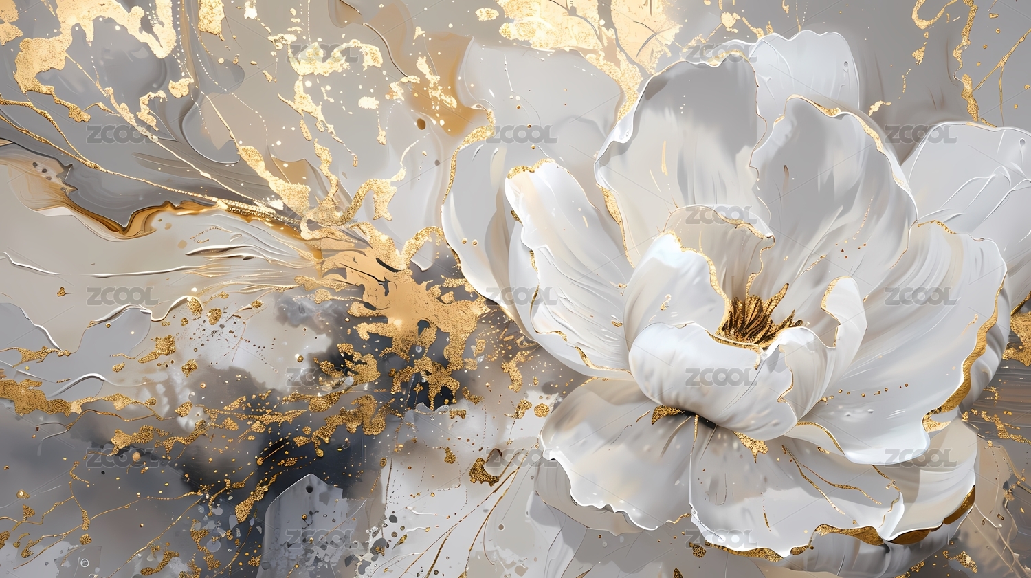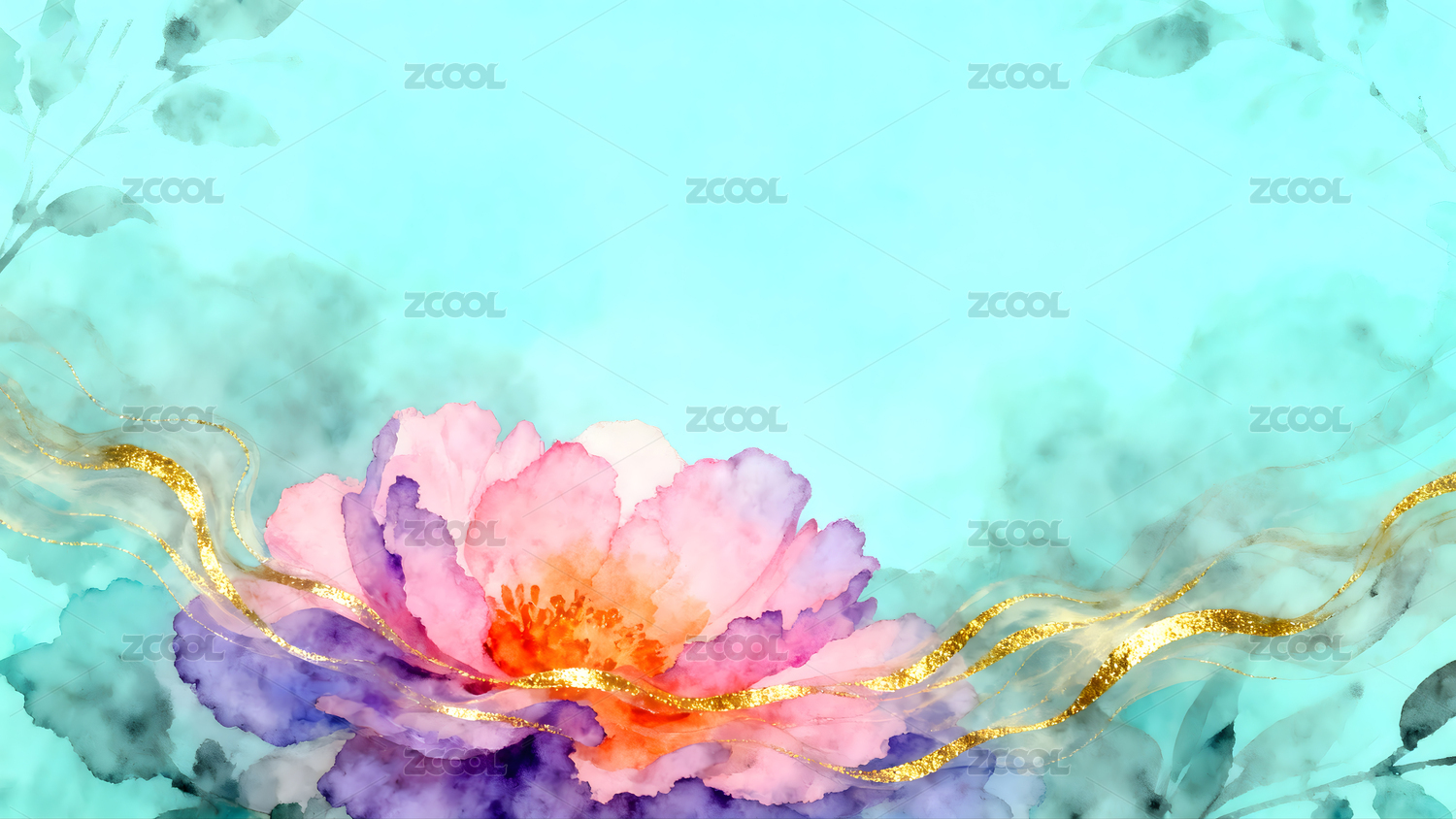 水墨,中国风,山,花朵,金箔,山脉,金色