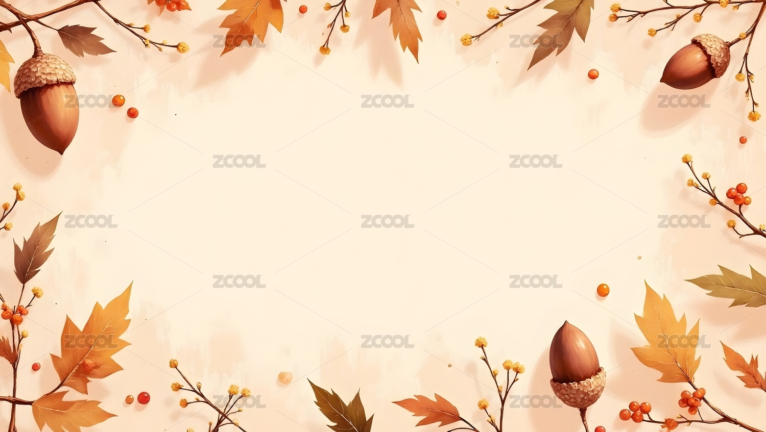 可爱,卡通,秋季,橡子,金色,色调,枫叶,秋天,立秋,节气