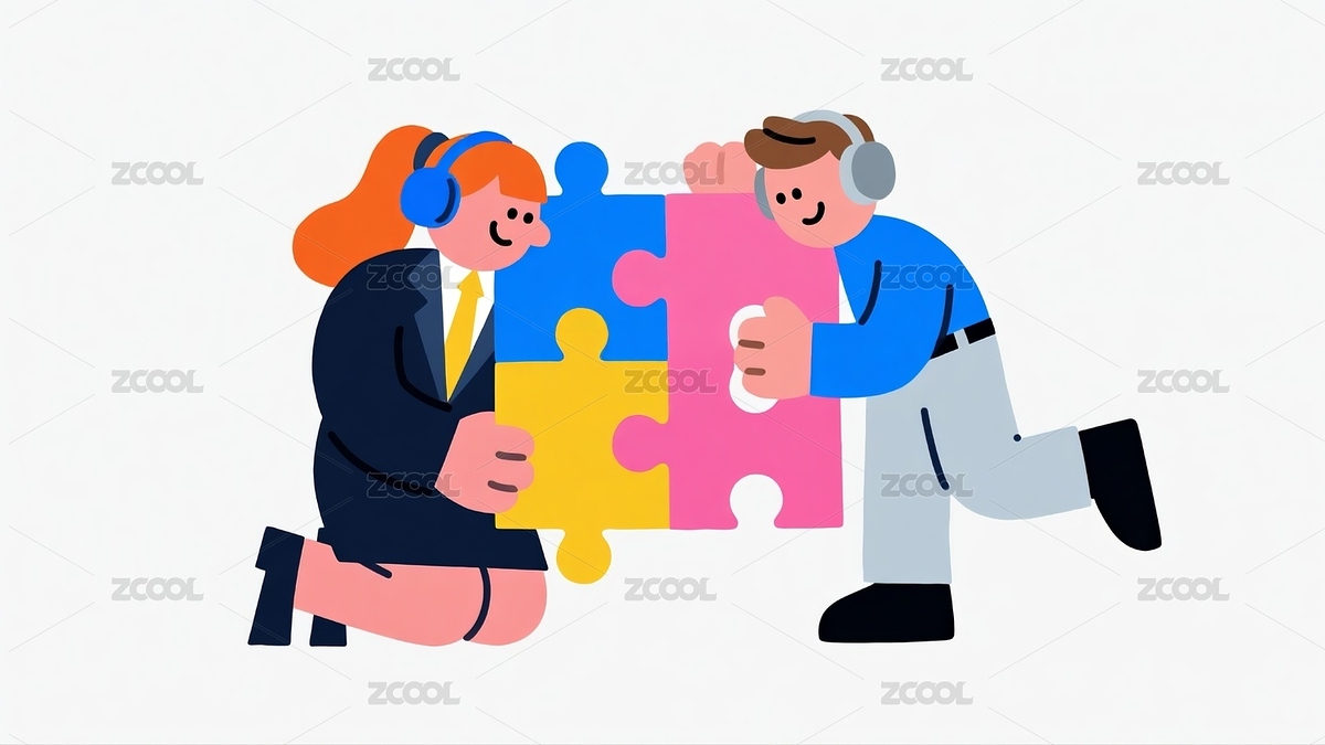 拼图,插画,职场,扁平,团队,协作,合作,共赢,商务,携手