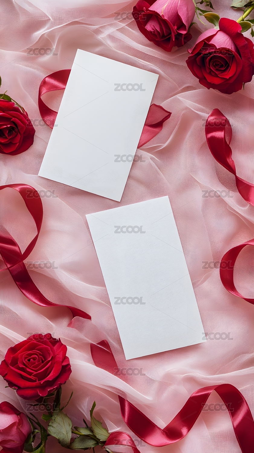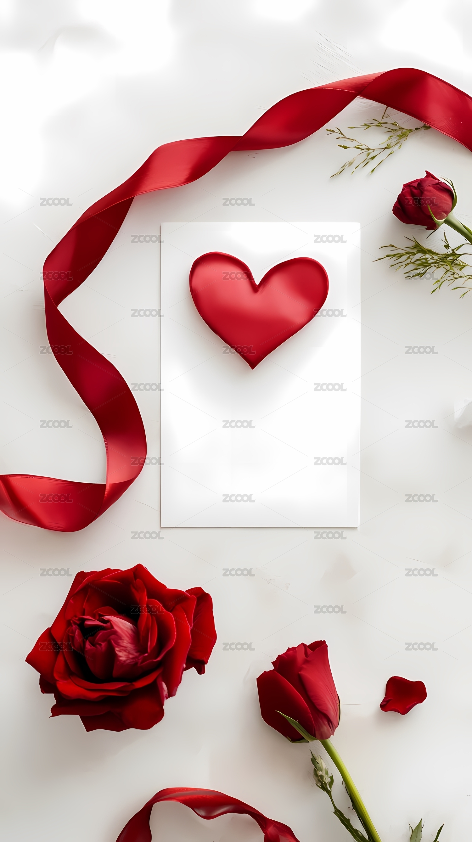 红心红玫瑰红丝带与白纸