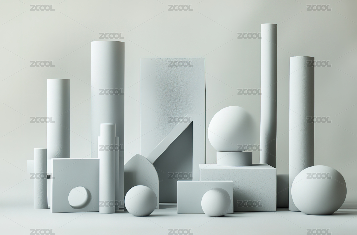 几何,立体,组合,抽象,形状,圆形,方形,灰色,简约,现代