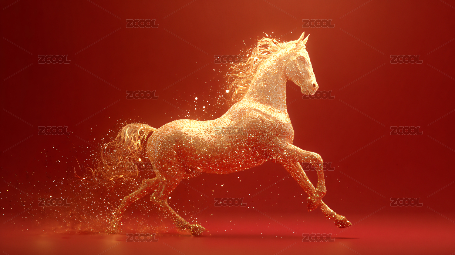 金色,奔马,艺术,图像,红色,背景,动感,力量,活力,自由