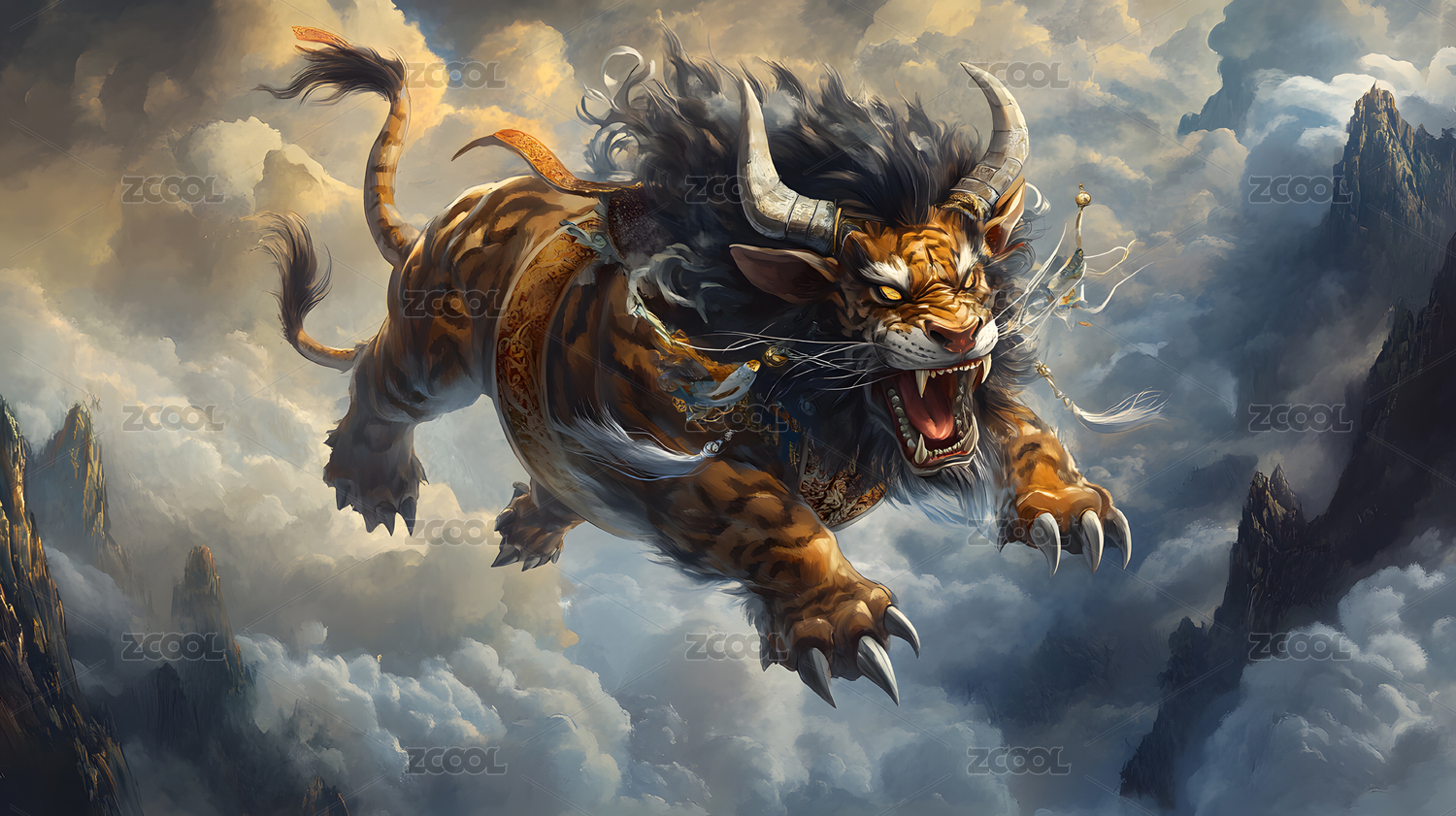 腾云驾雾的虎形神兽