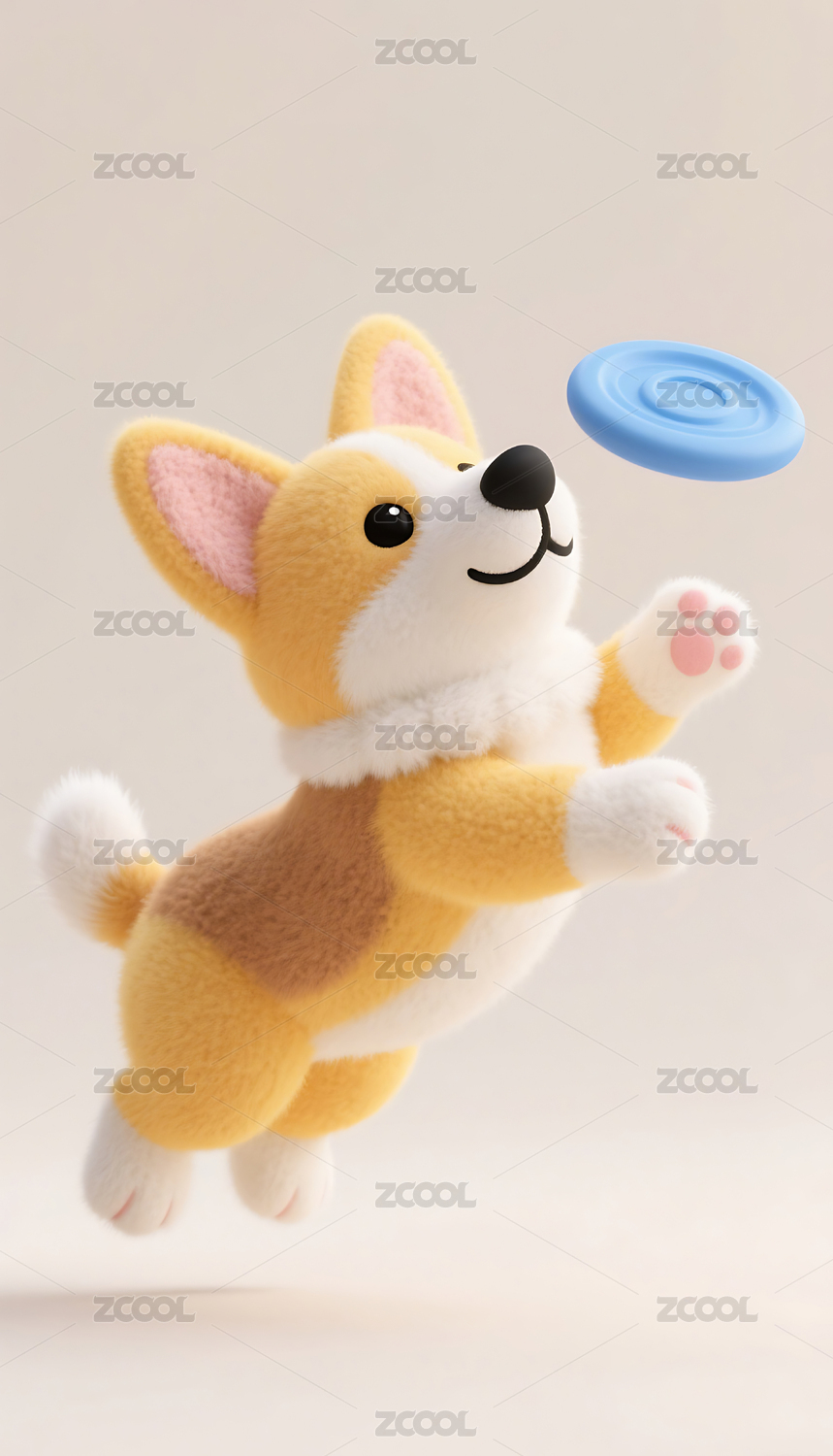 3D建模羊毛毡毛绒绒质感小狗柯基模型