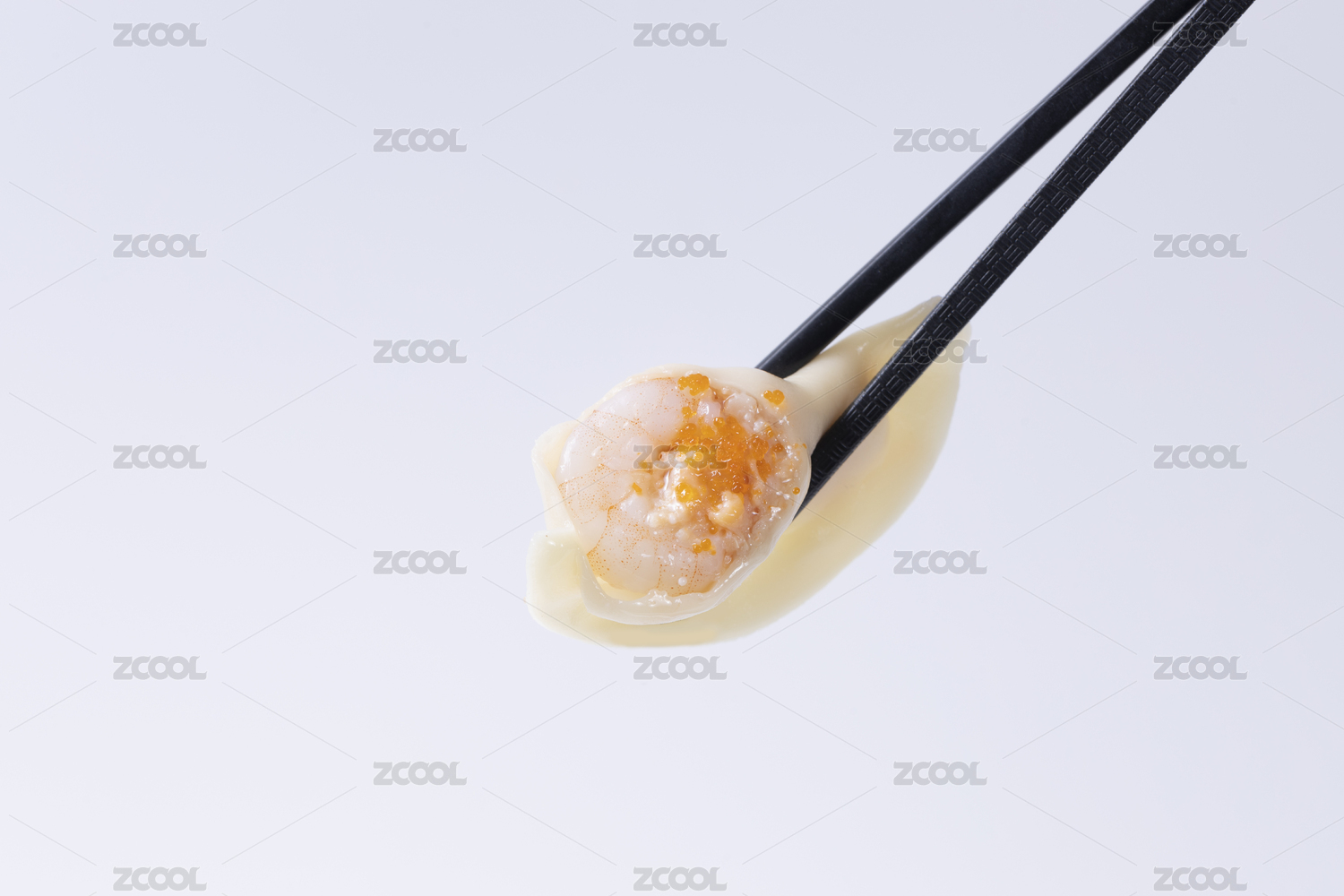 筷子夹着的海鲜虾仁抄手