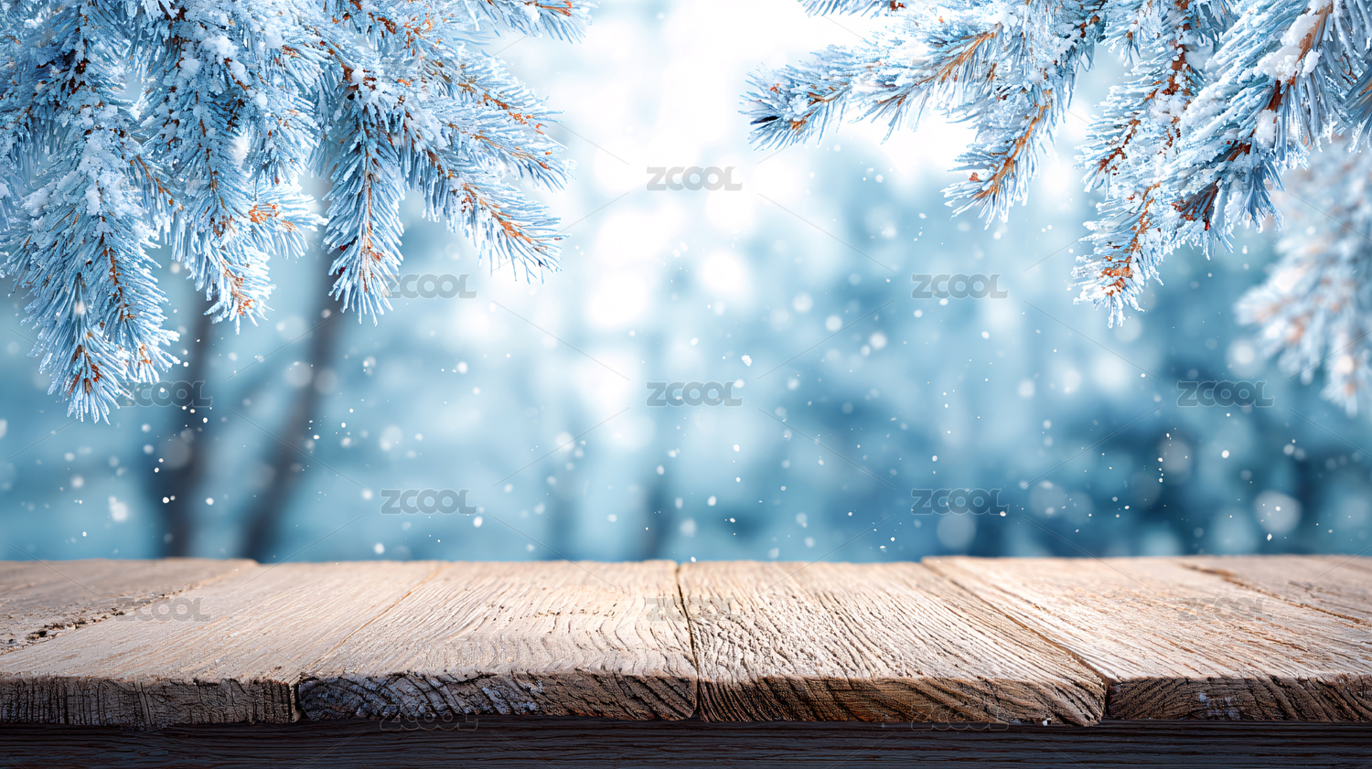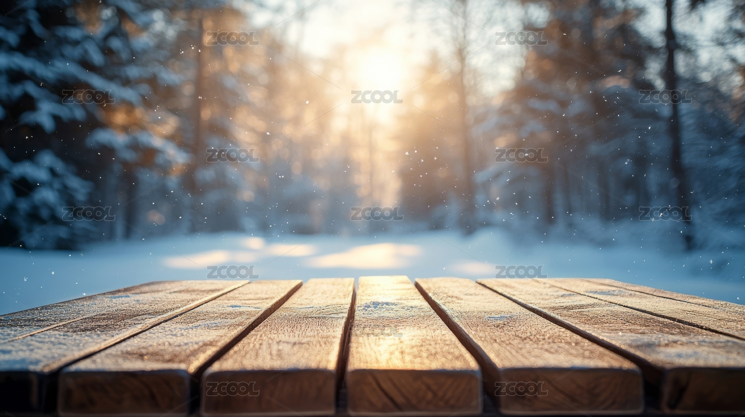 冬日雪景木桌场景