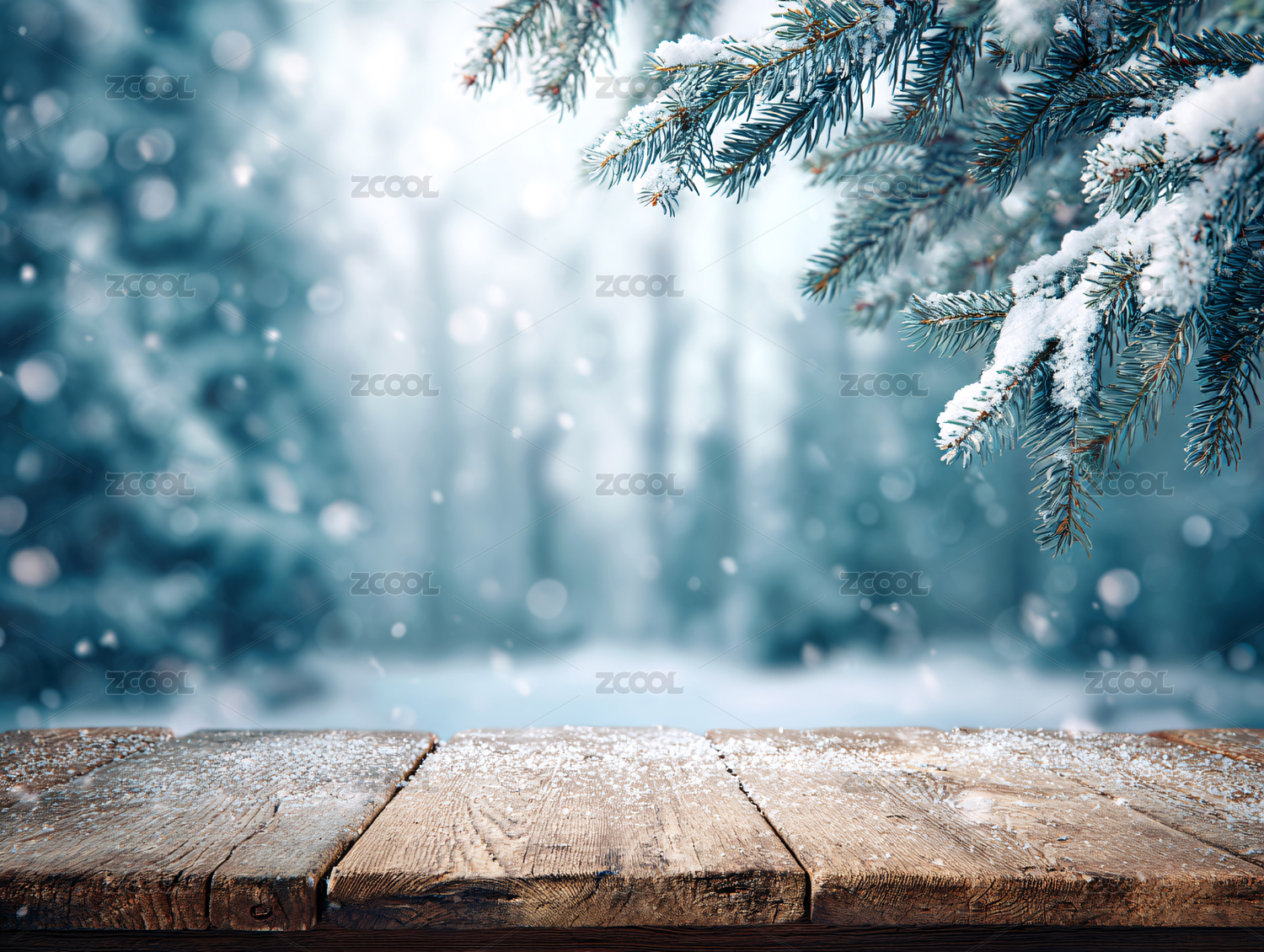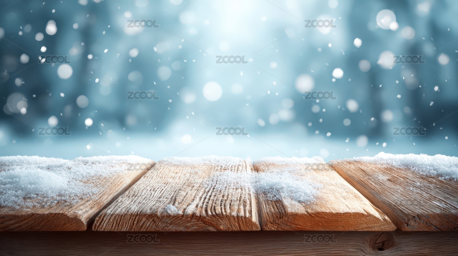 冬日雪景木桌