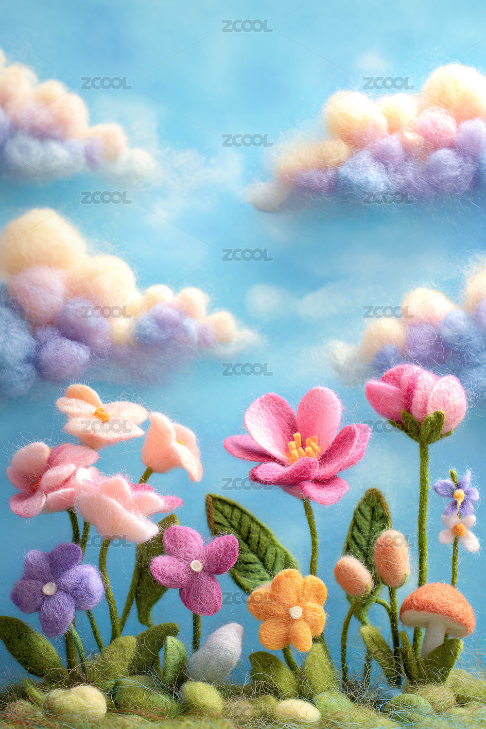 羊毛毡,手工,花园,花朵,春天,蓝天,云朵,梦幻,童话,清新