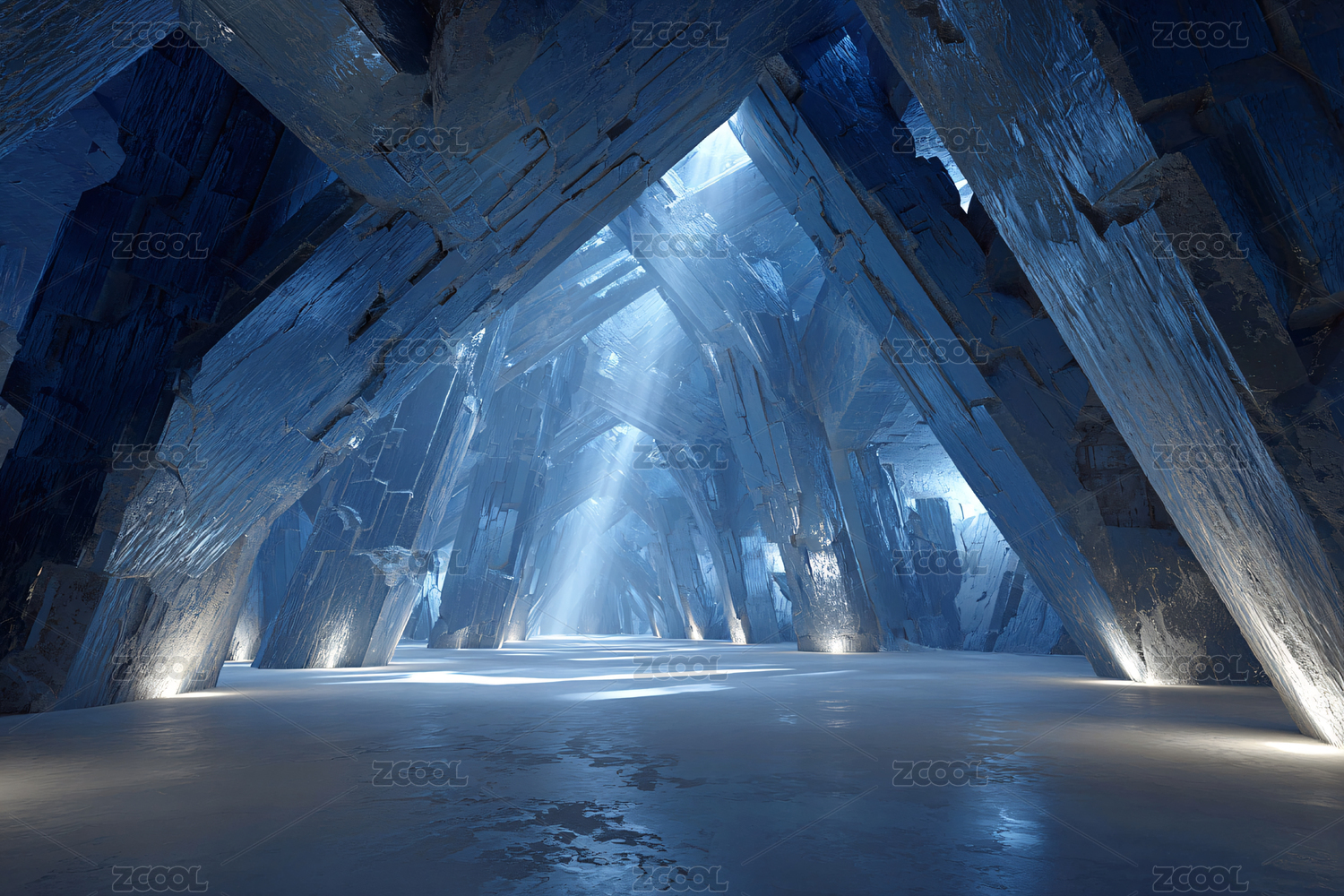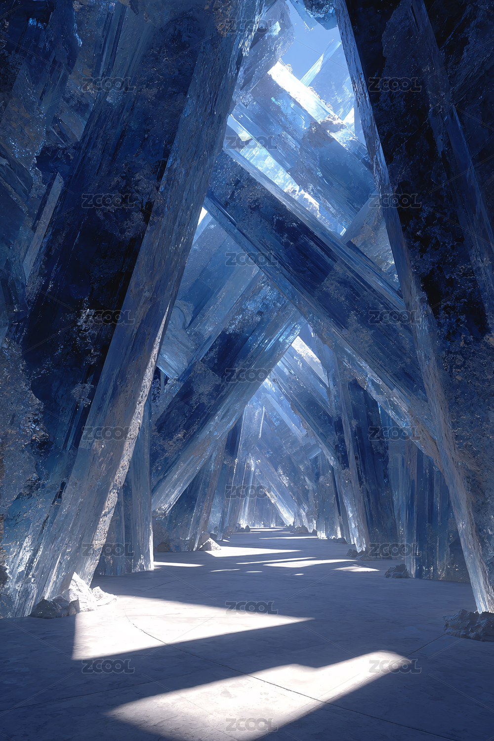冰川,晶体,结构,空间,未来,幽蓝,光影,建筑,冷色调,抽象