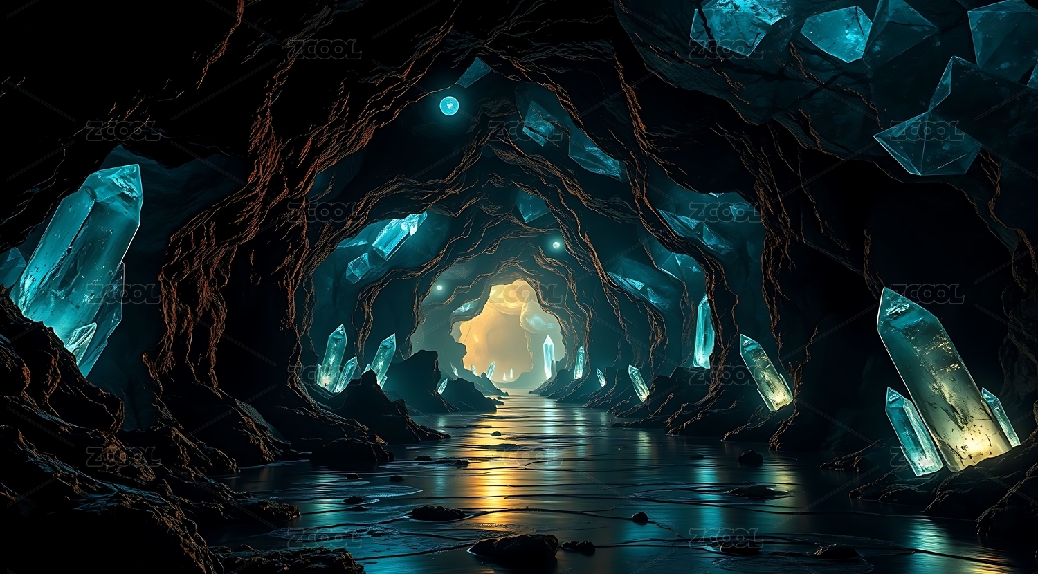 神秘洞穴中的荧光水晶
