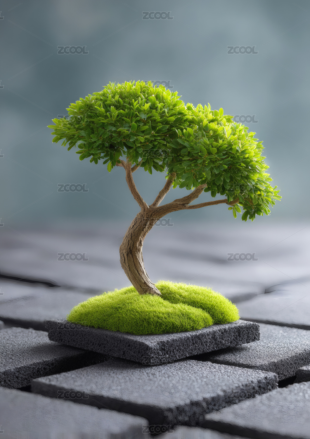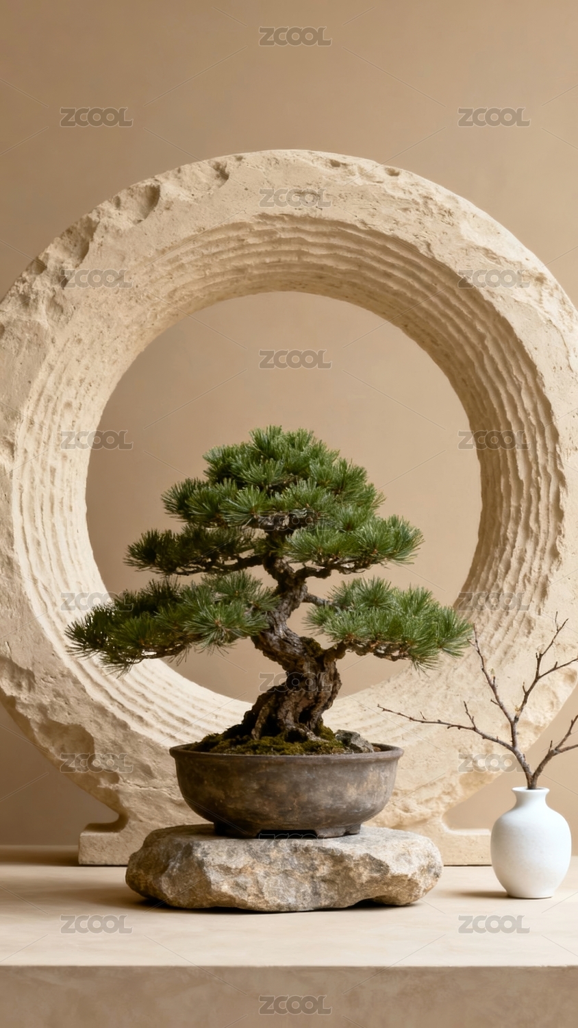 精致的盆景艺术,展示着绿意盎然的植物与岩
