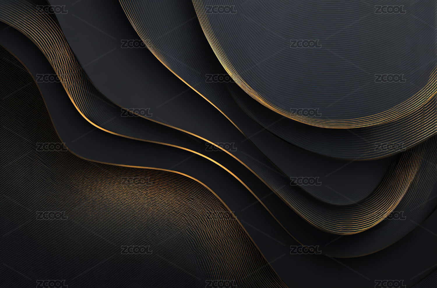 黑色与金色波纹抽象背景