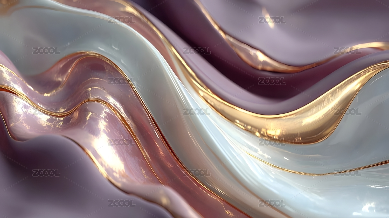 粉金色丝带波浪抽象艺术背景