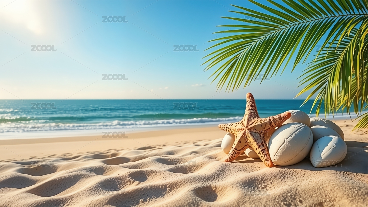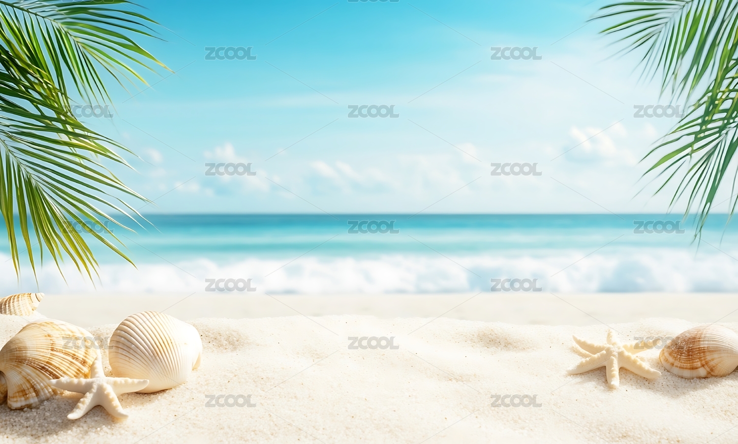 宁静海滩贝壳棕榈