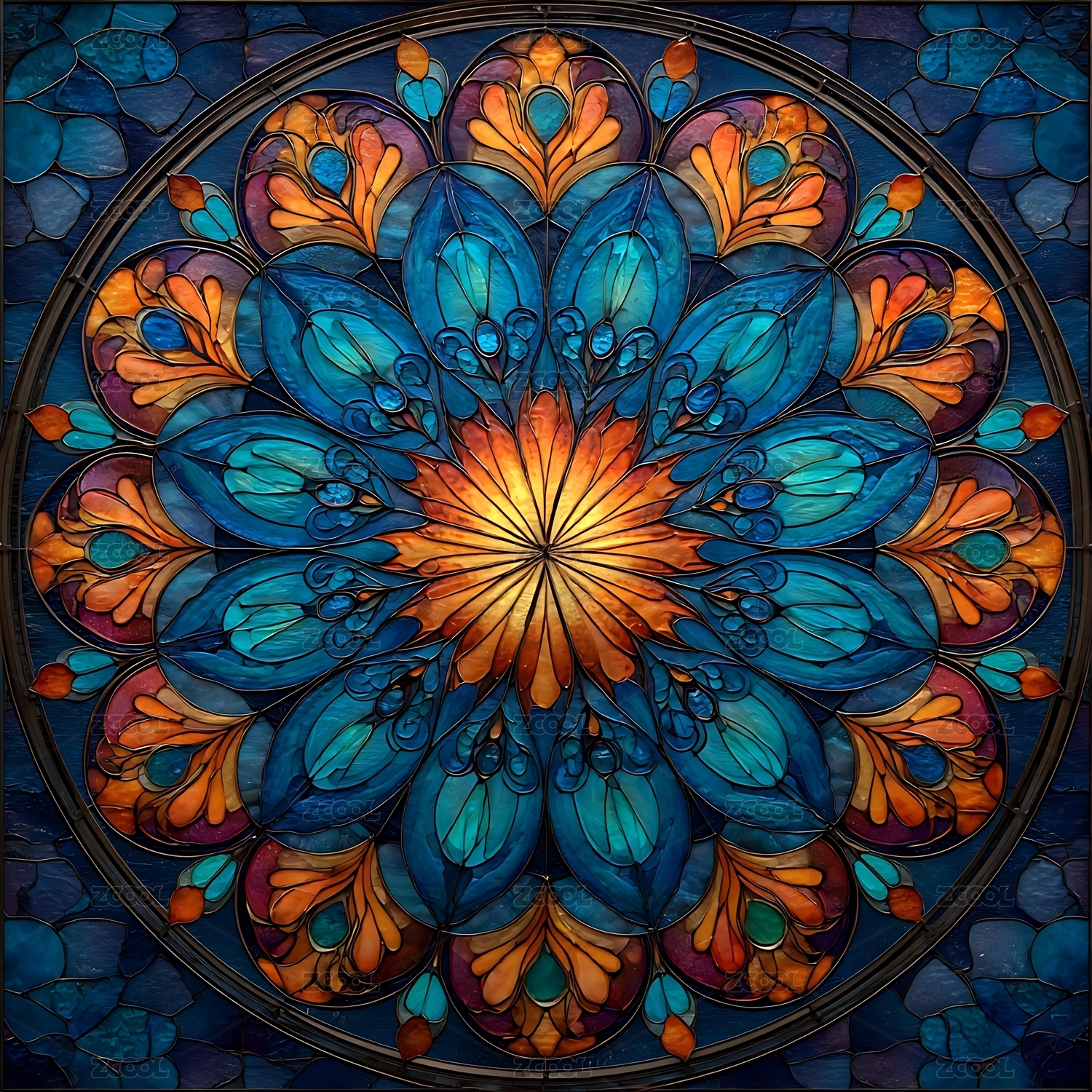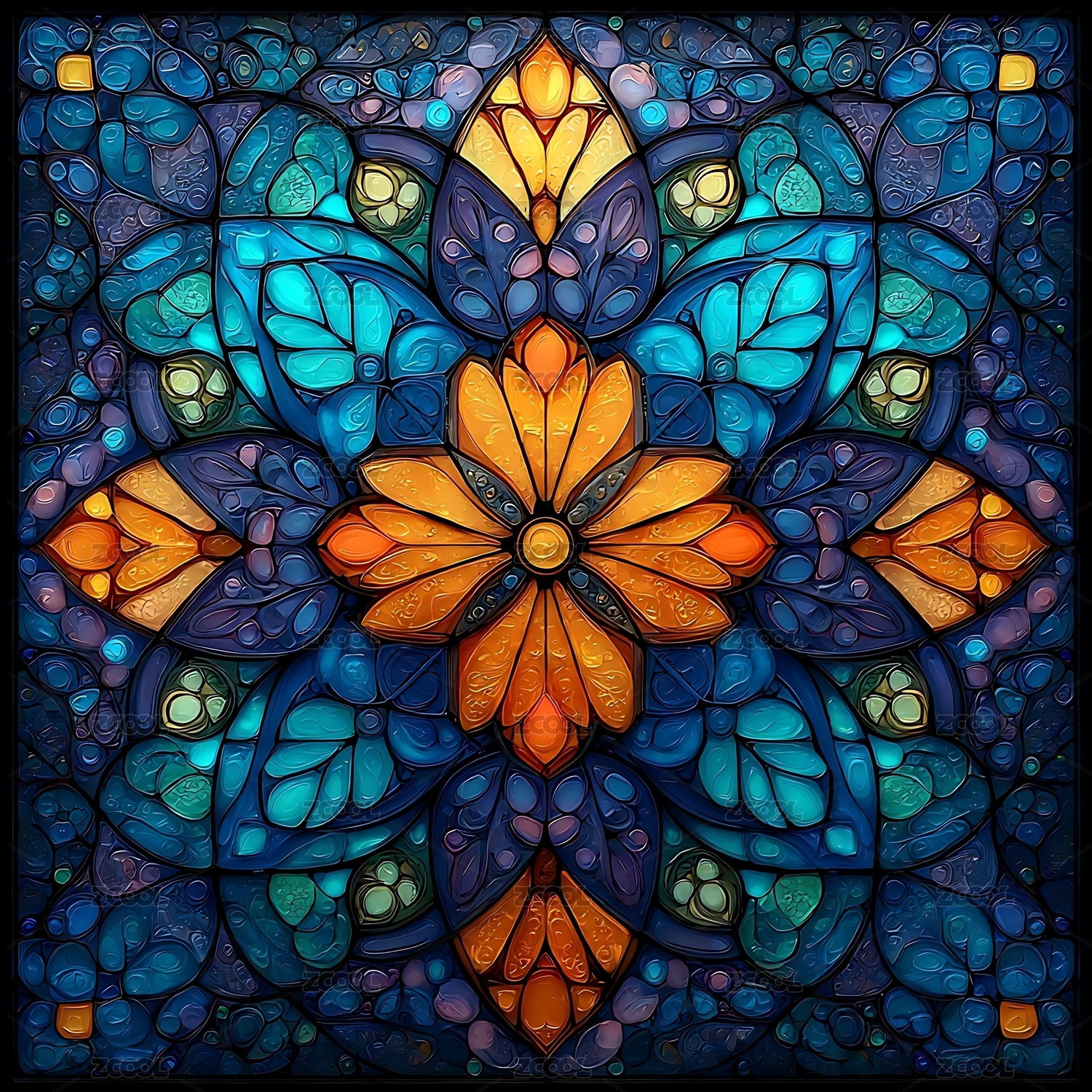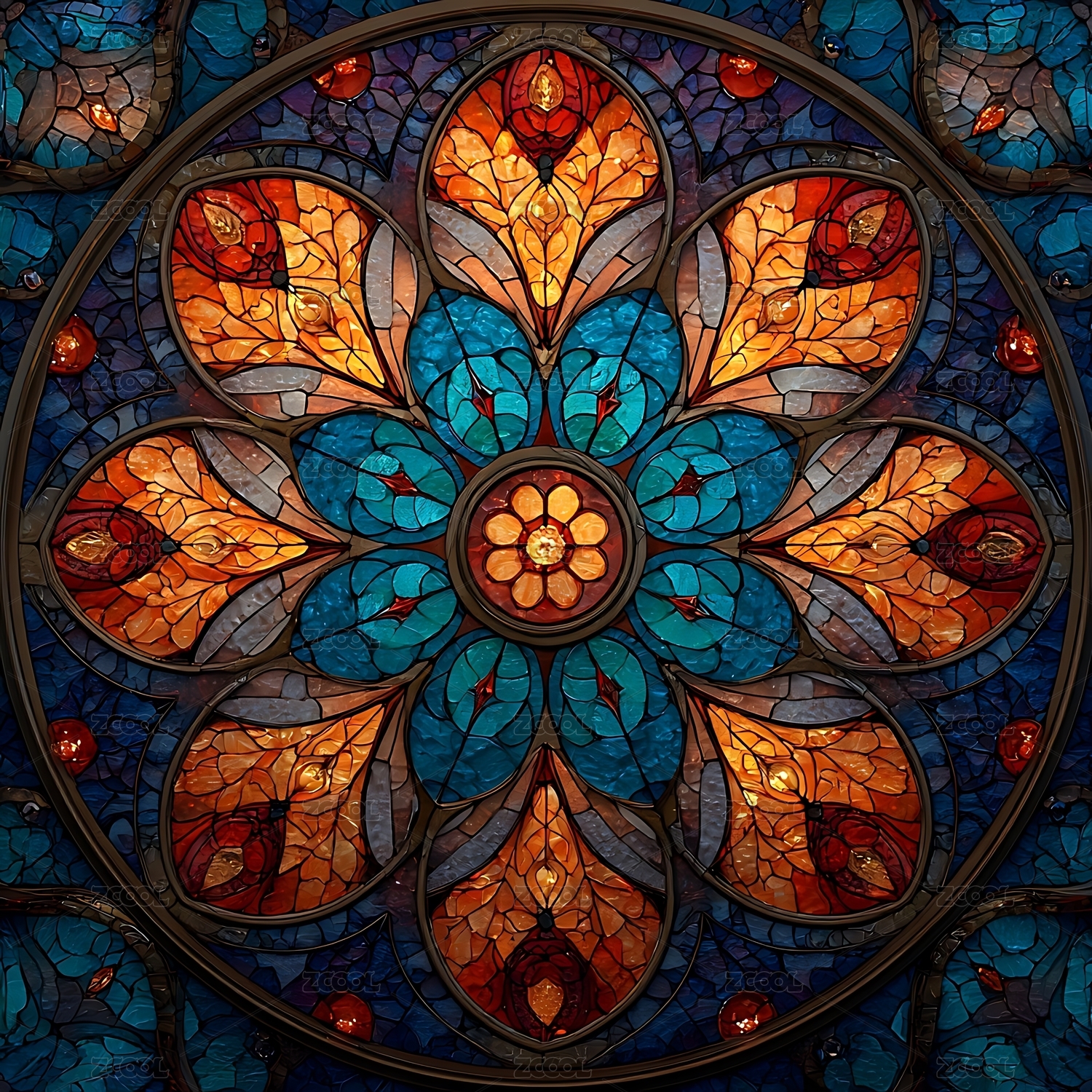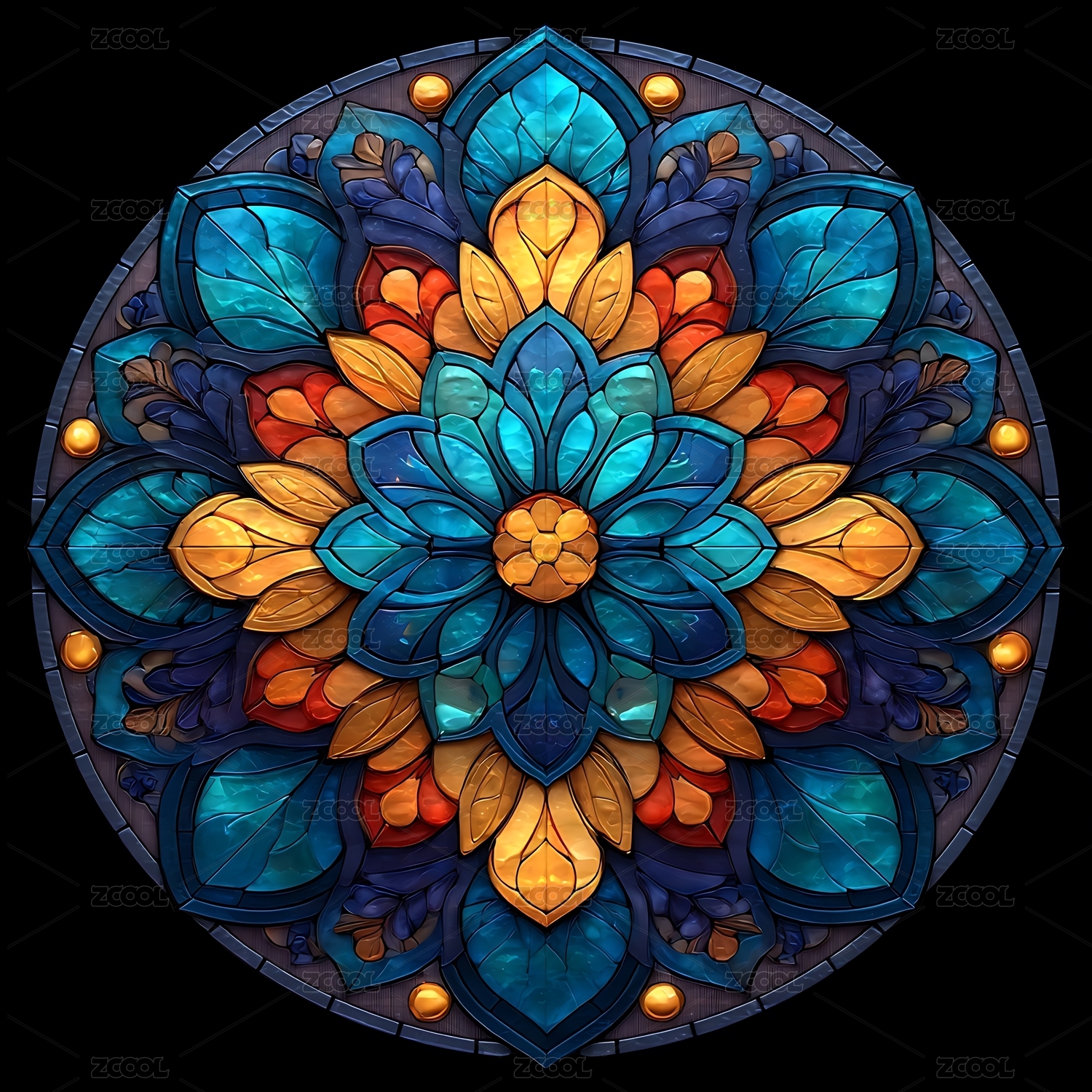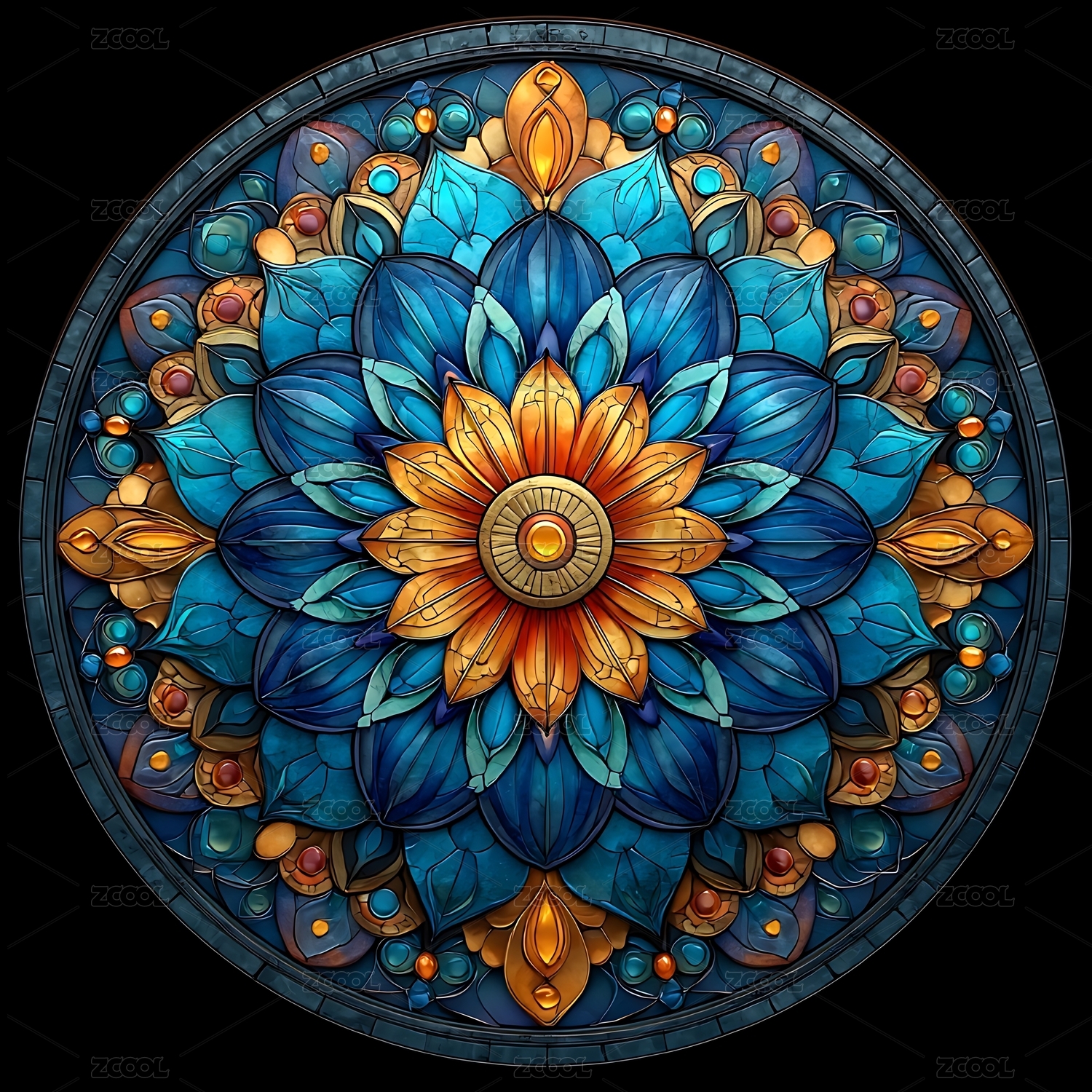 蓝色,艺术,图案,细节,装饰,对称,玻璃,花瓣,金色,中心