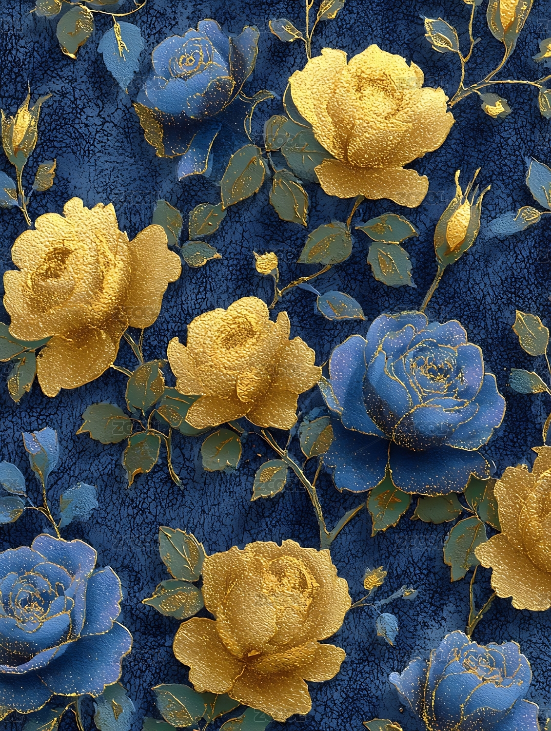 蓝色,花朵,艺术,装饰,叶子,金色,纹理,玫瑰,唯美,优雅