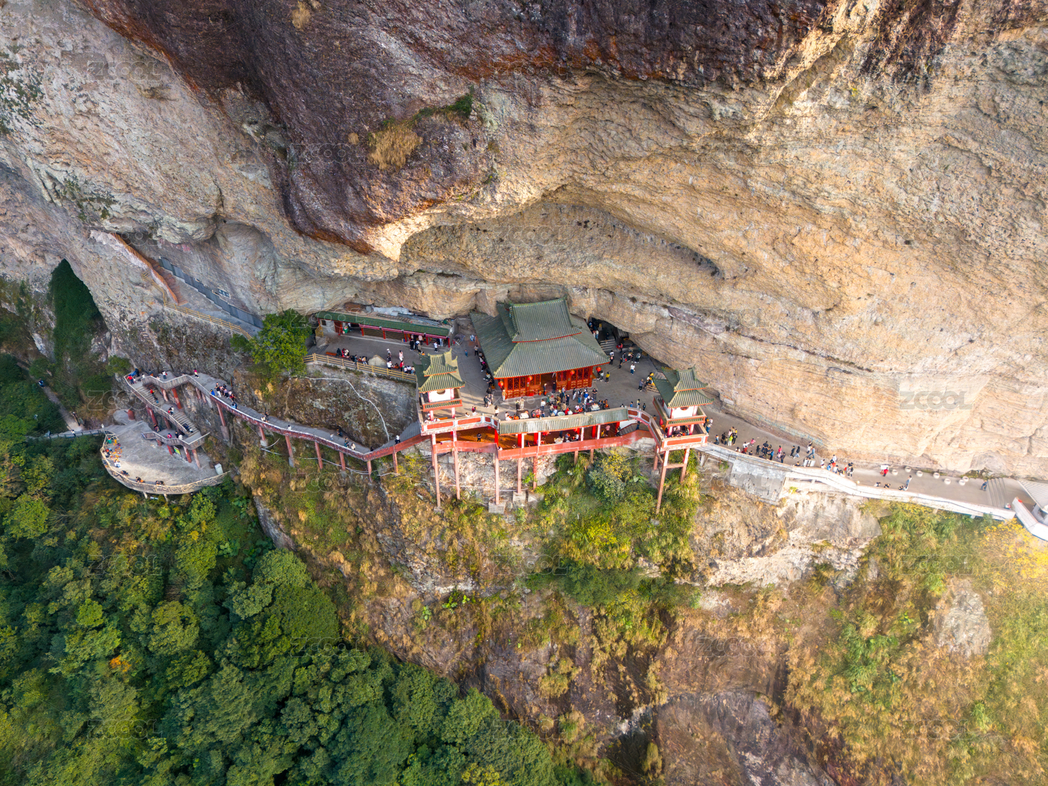 福建省漳州市平和县灵通山悬崖上的古建筑
