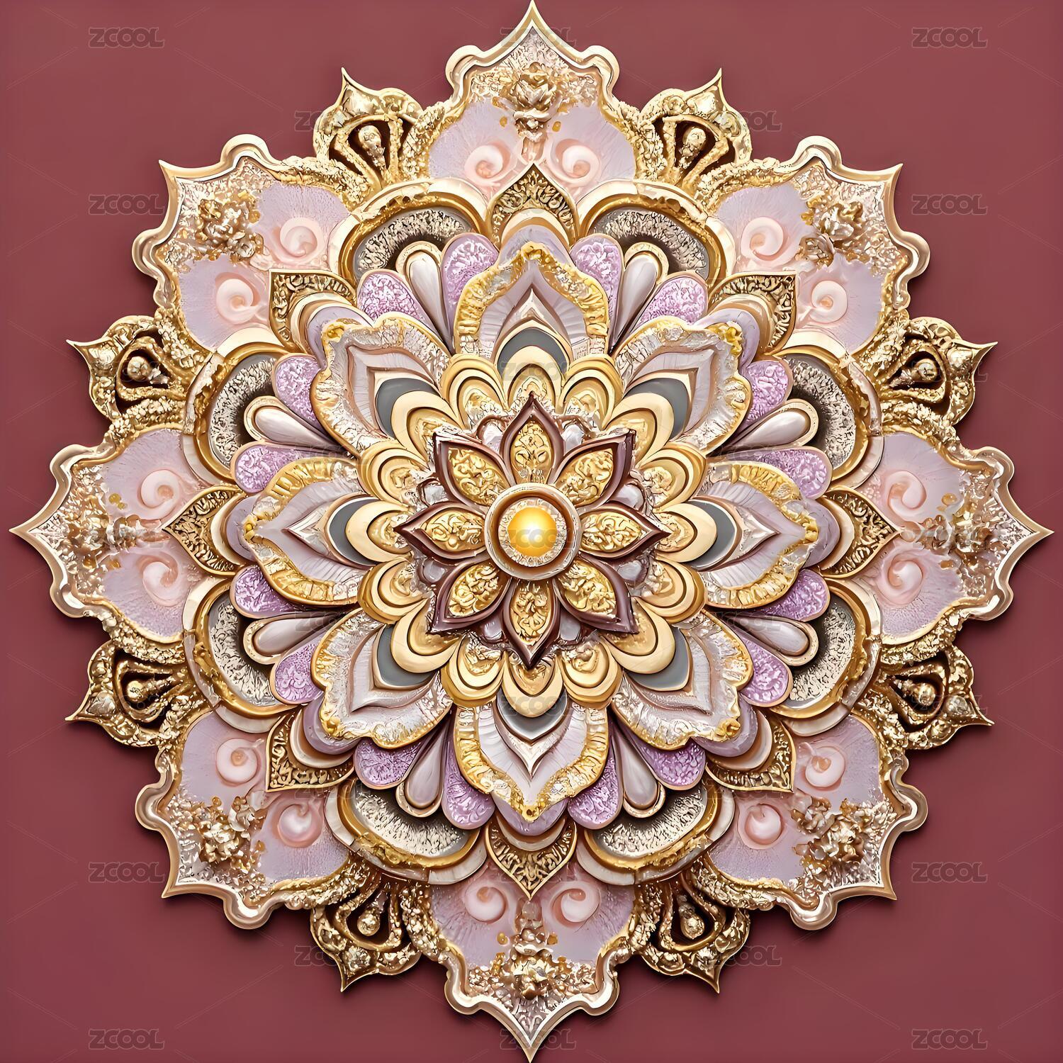 花朵形状复古鎏金镶嵌宝石饰物纹样