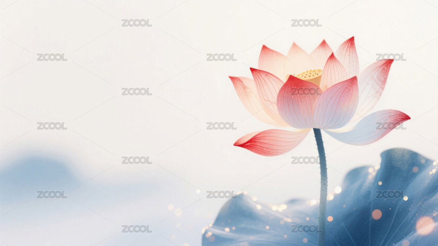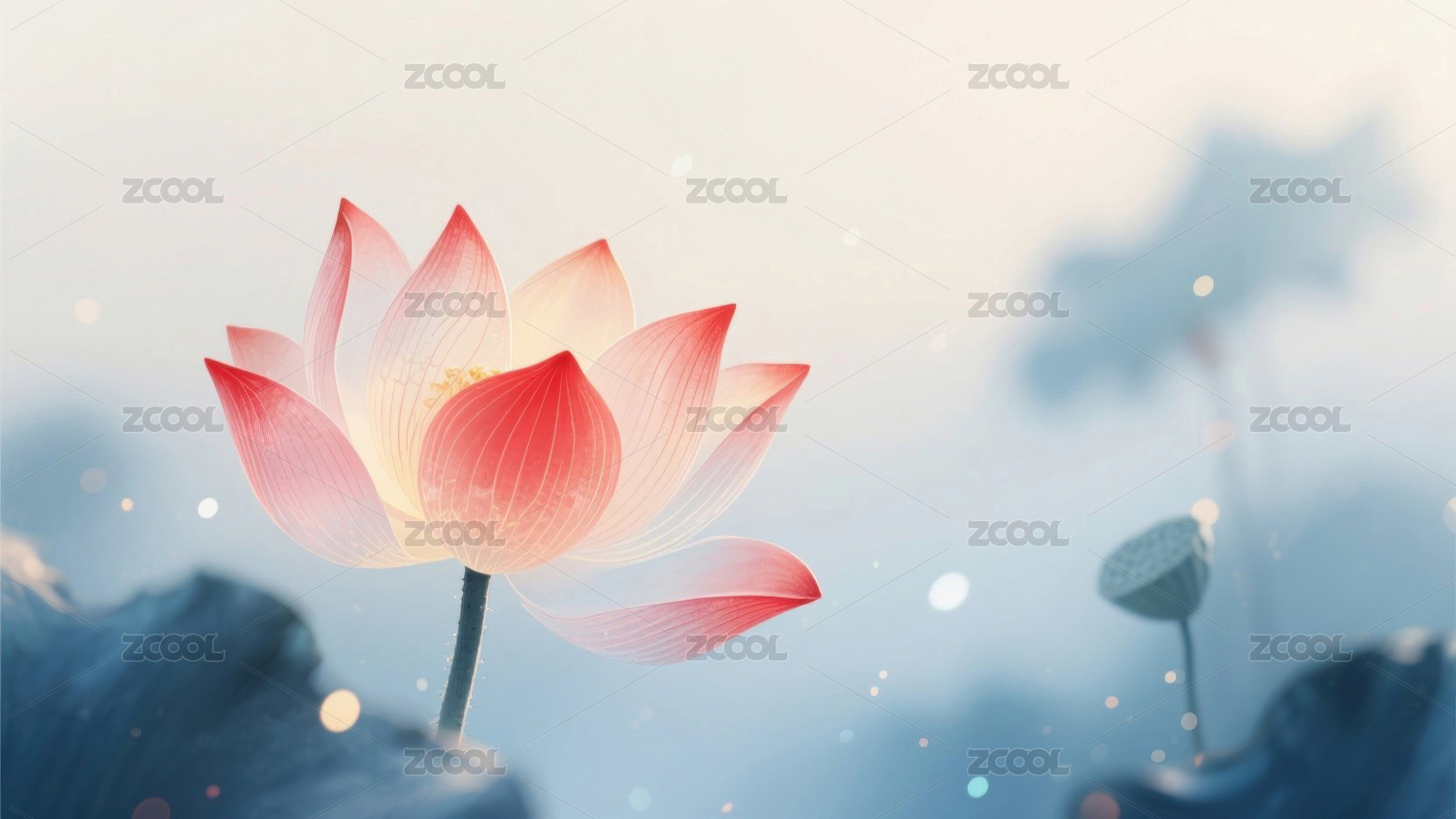 简约中国风池塘中的一朵莲花