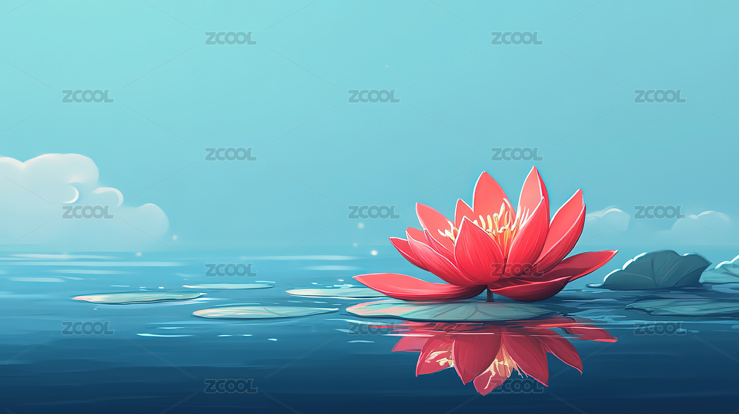 3D池塘里的荷花插画