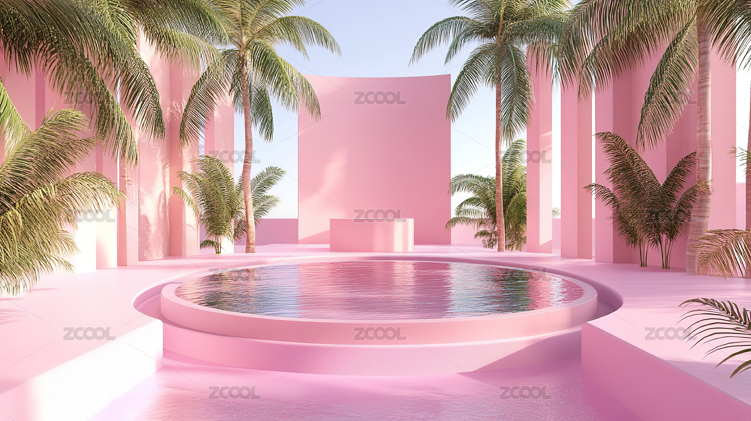 浅粉色游泳池夏日氛围背景