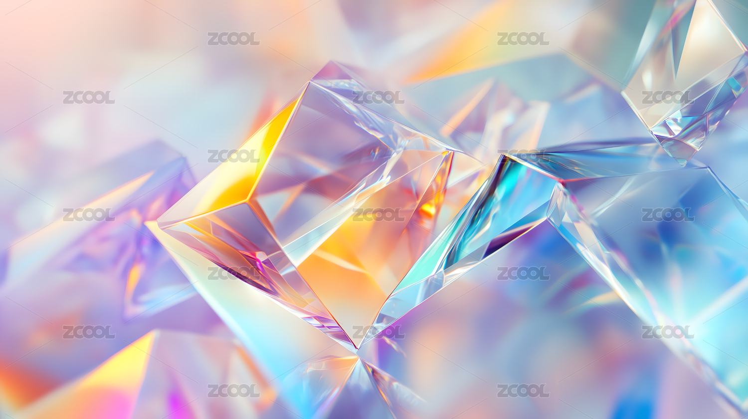数码彩色透明玻璃立体抽象图形海报网页背景