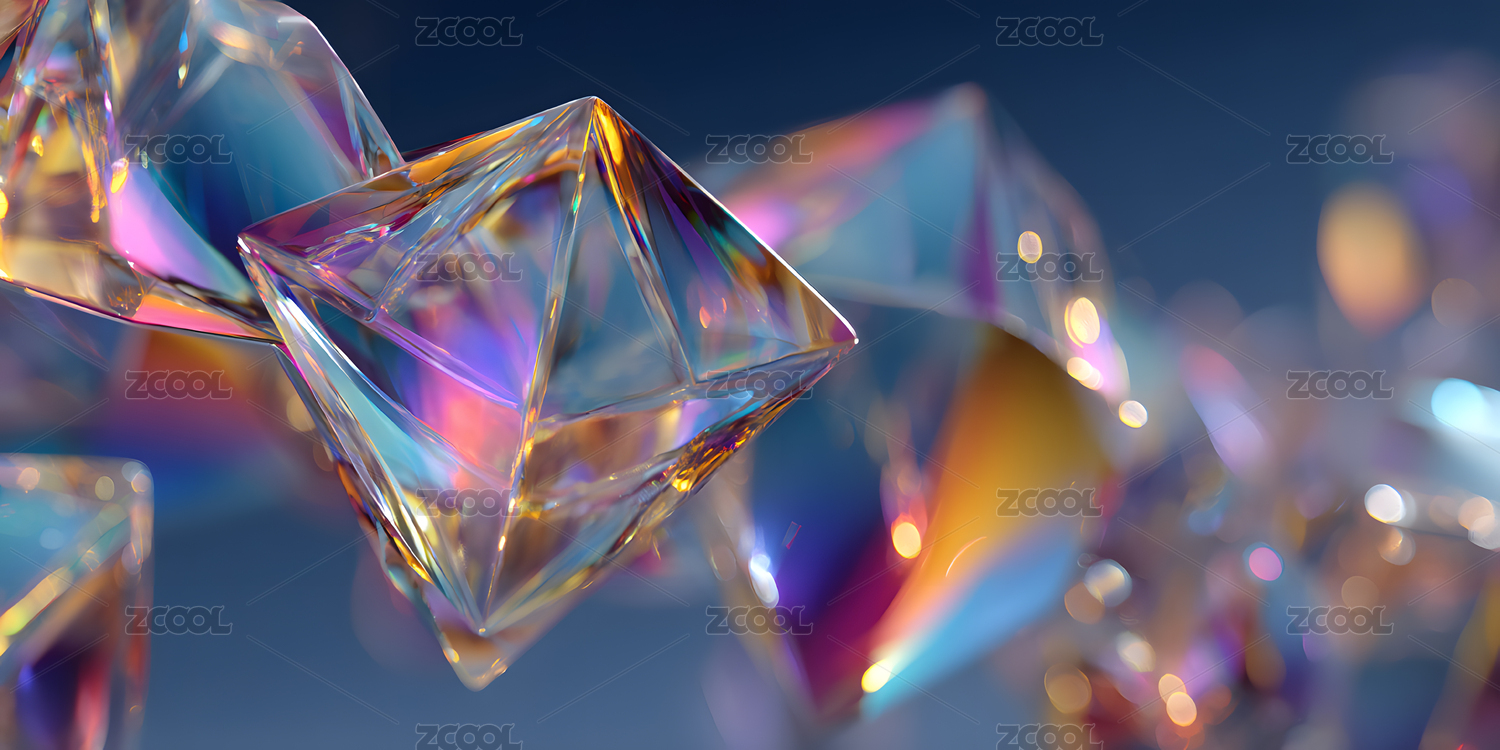 数码彩色透明玻璃立体抽象图形海报网页背景